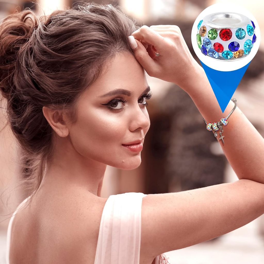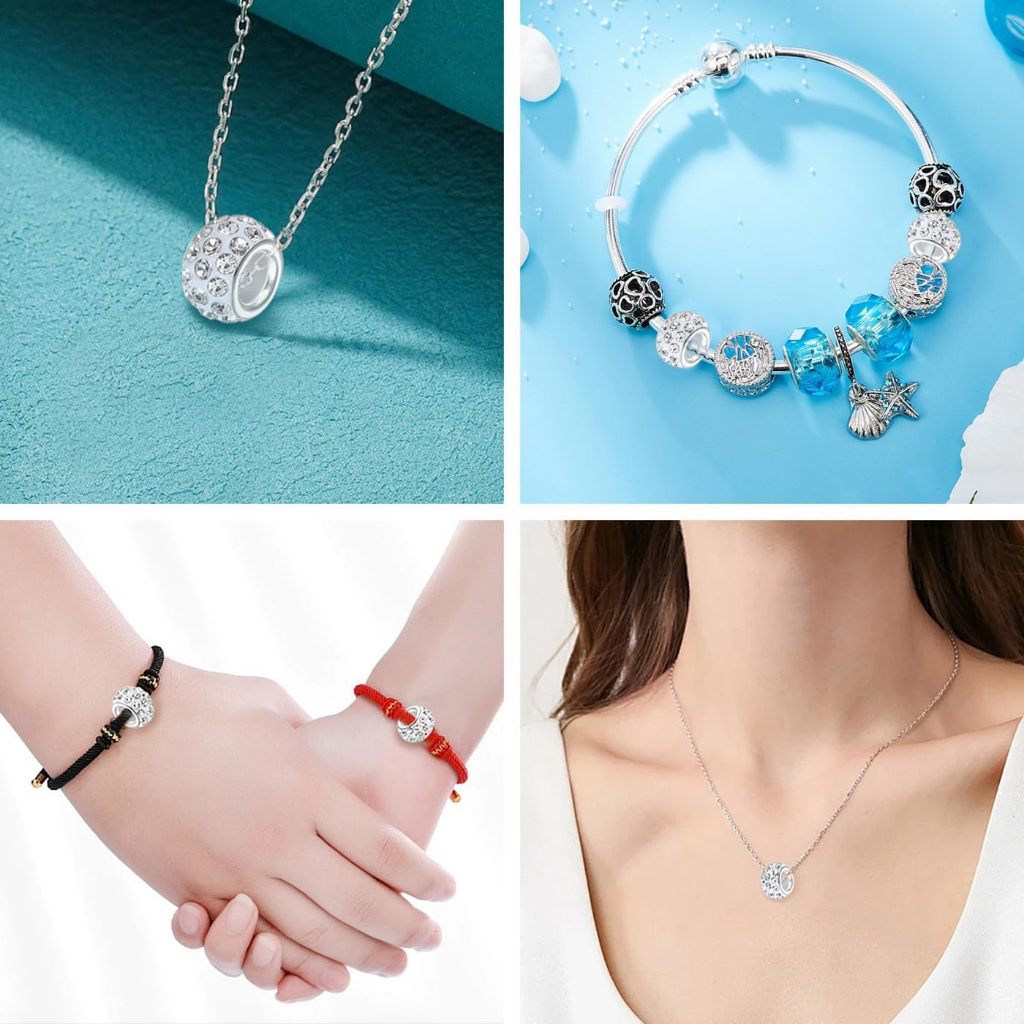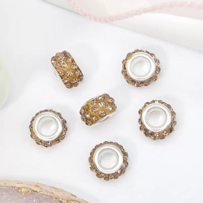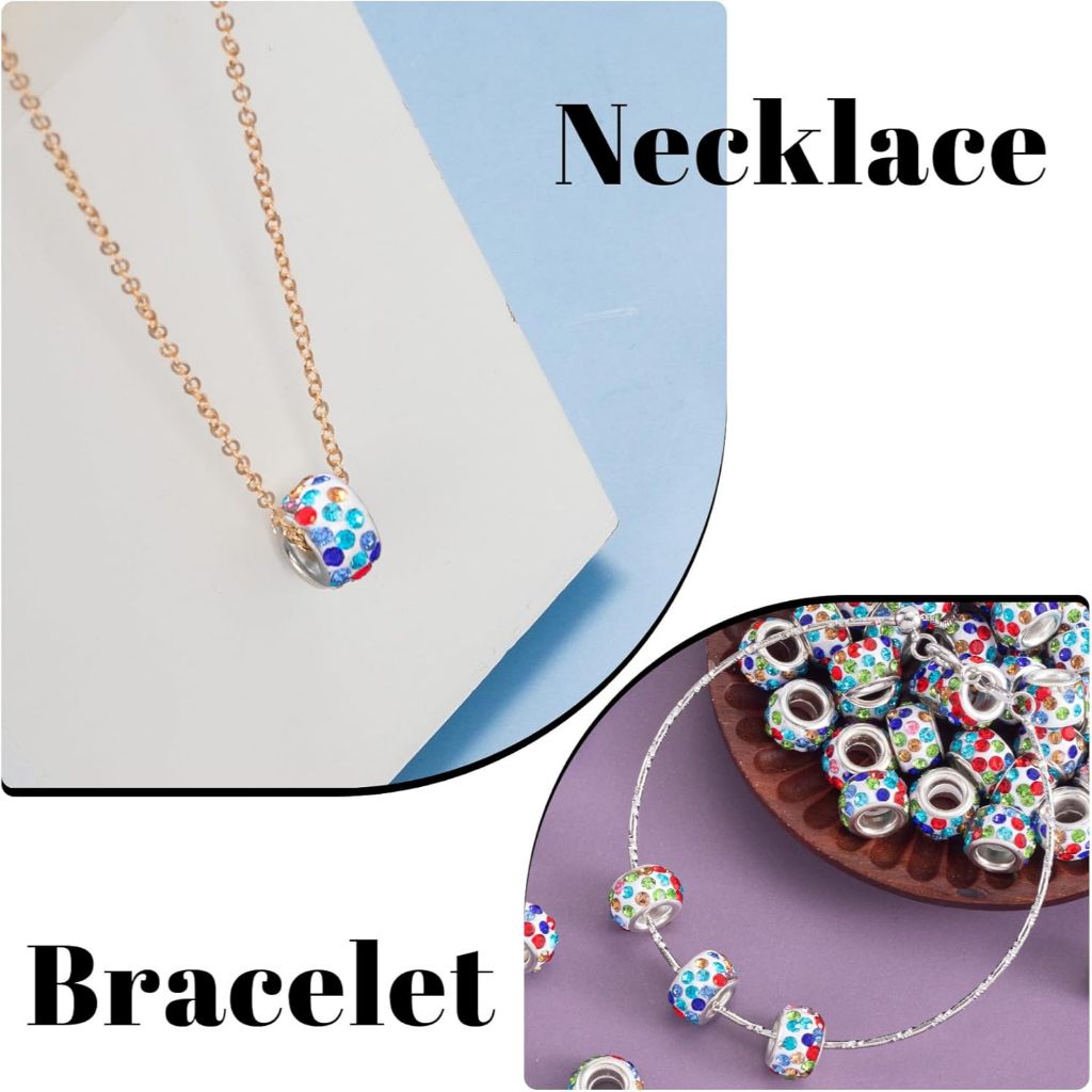 Kit 20 de Contas Espaçadoras Europeias com Strass Furos Grandes DIY Berloques Pulseiras
