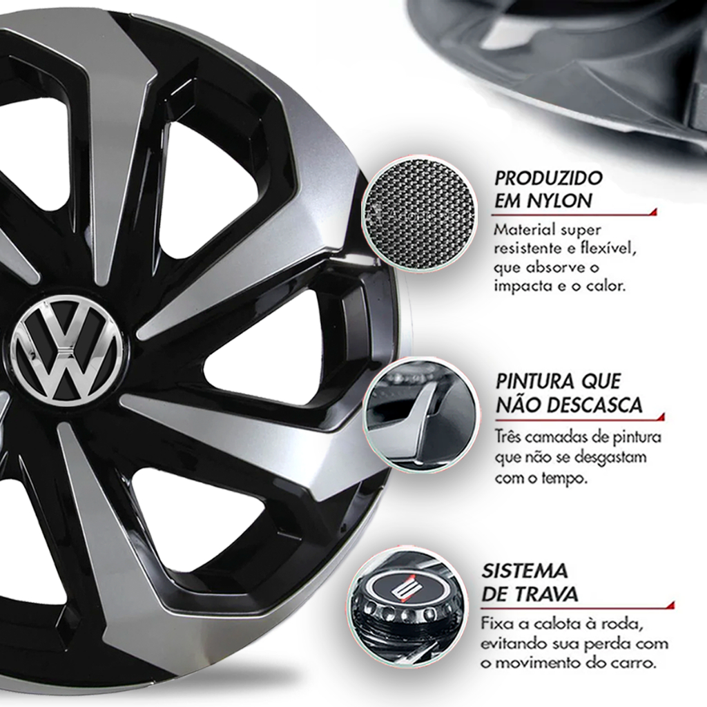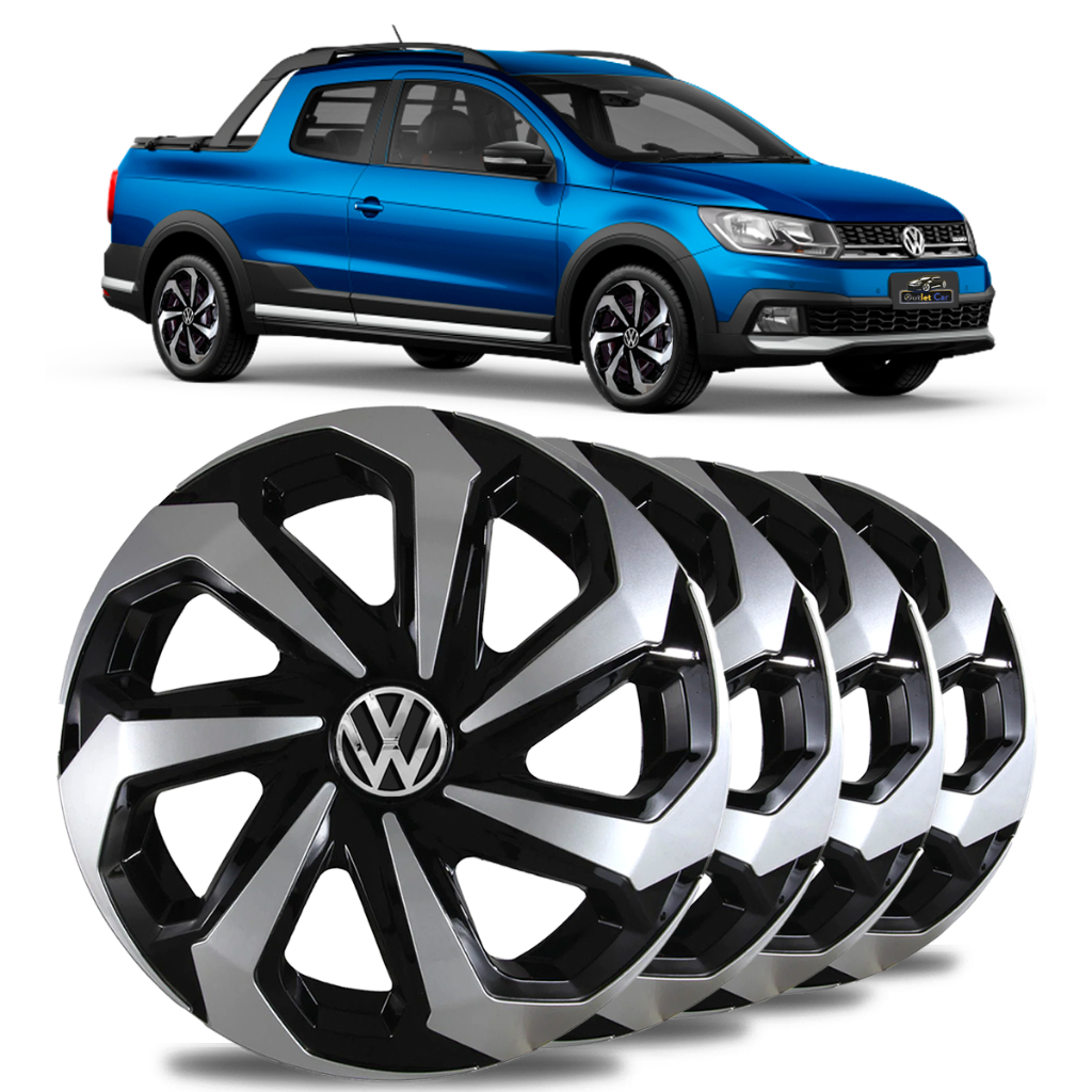 Jogo 4 Calotas Spider Black Silver Aro 13 Vw Saveiro Gol Up