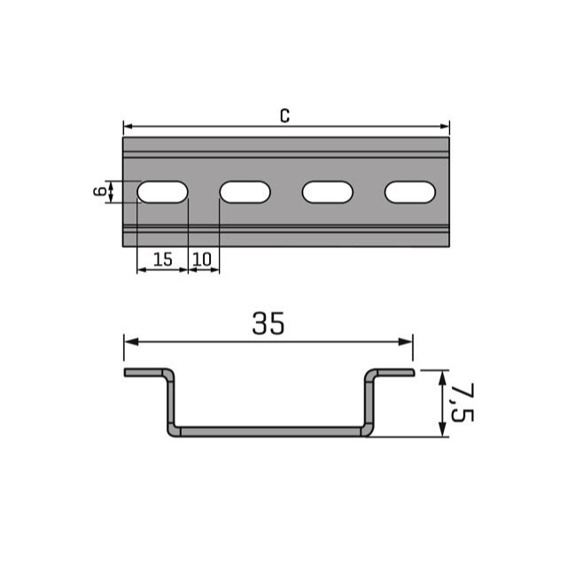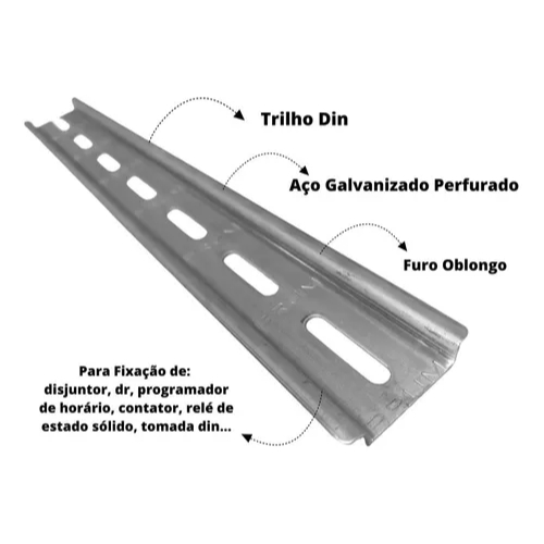 Trilho Din Ts35 Perfurado Galvanizado para Quadro Elétrico Disjuntor