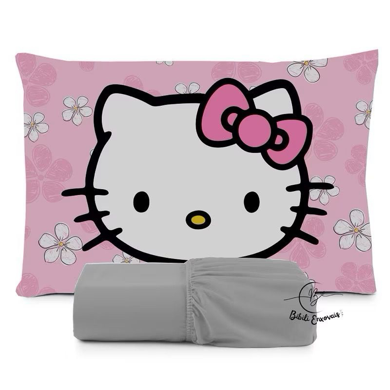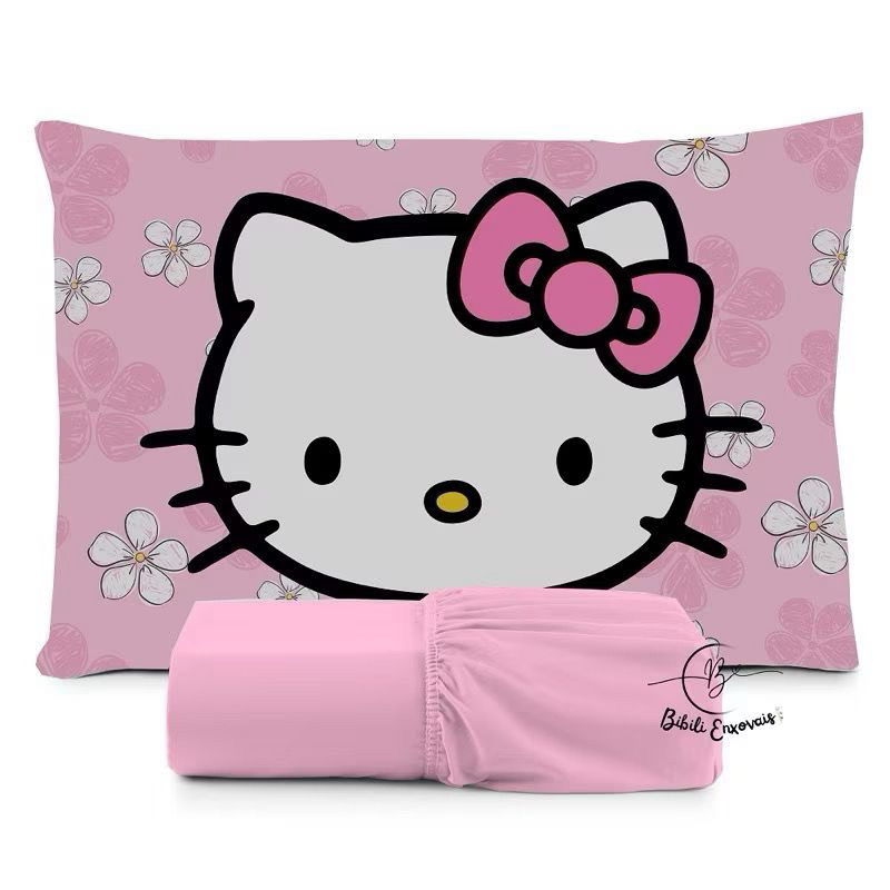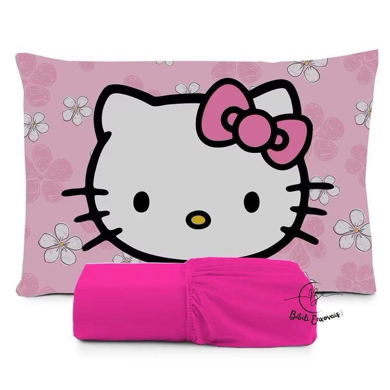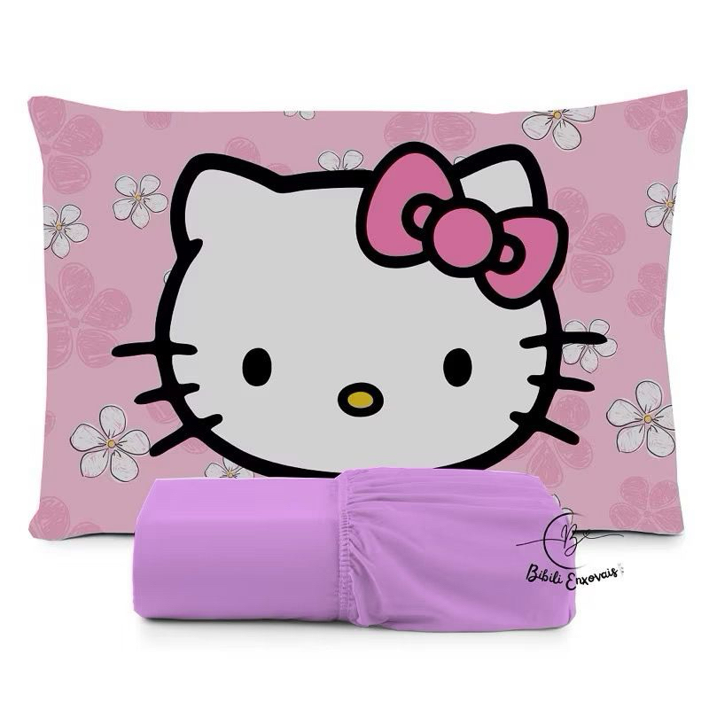 JOGO DE LENÇOL SOLTEIRO 2 PEÇAS, LENÇOL DE ELASTICO, CAPA DE TRAVESSEIRO, HELLO KITY