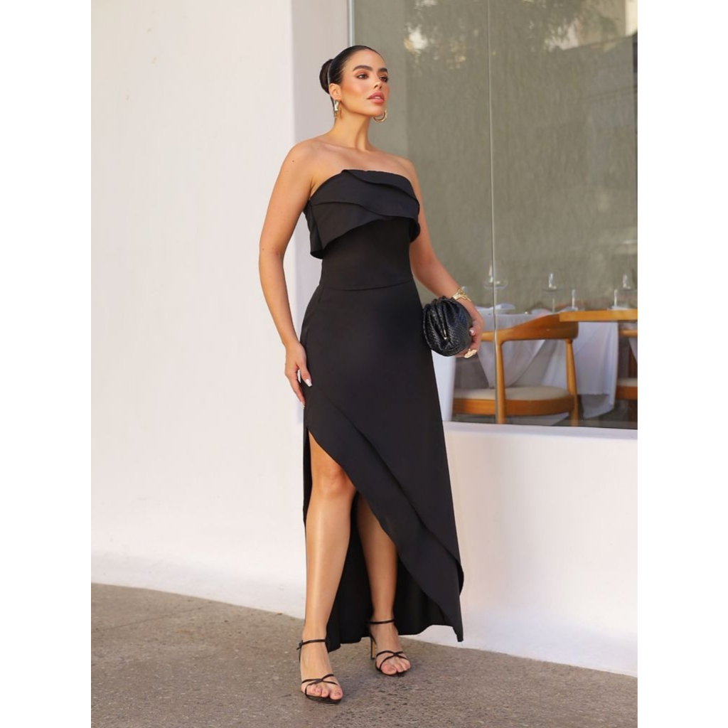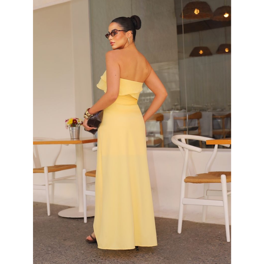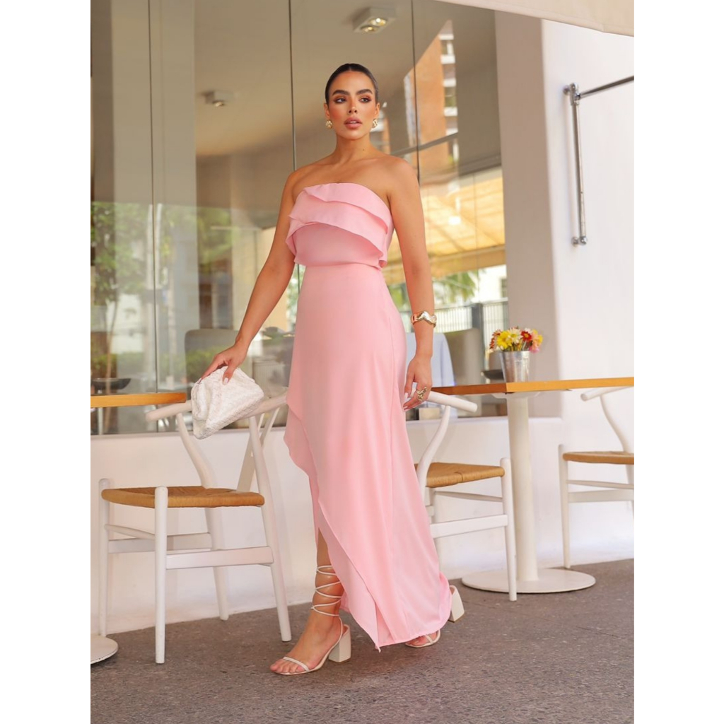 Conjunto Feminino Vivele Saia Longa +Cropped Tomara Que Caia Crepe Acetinado.