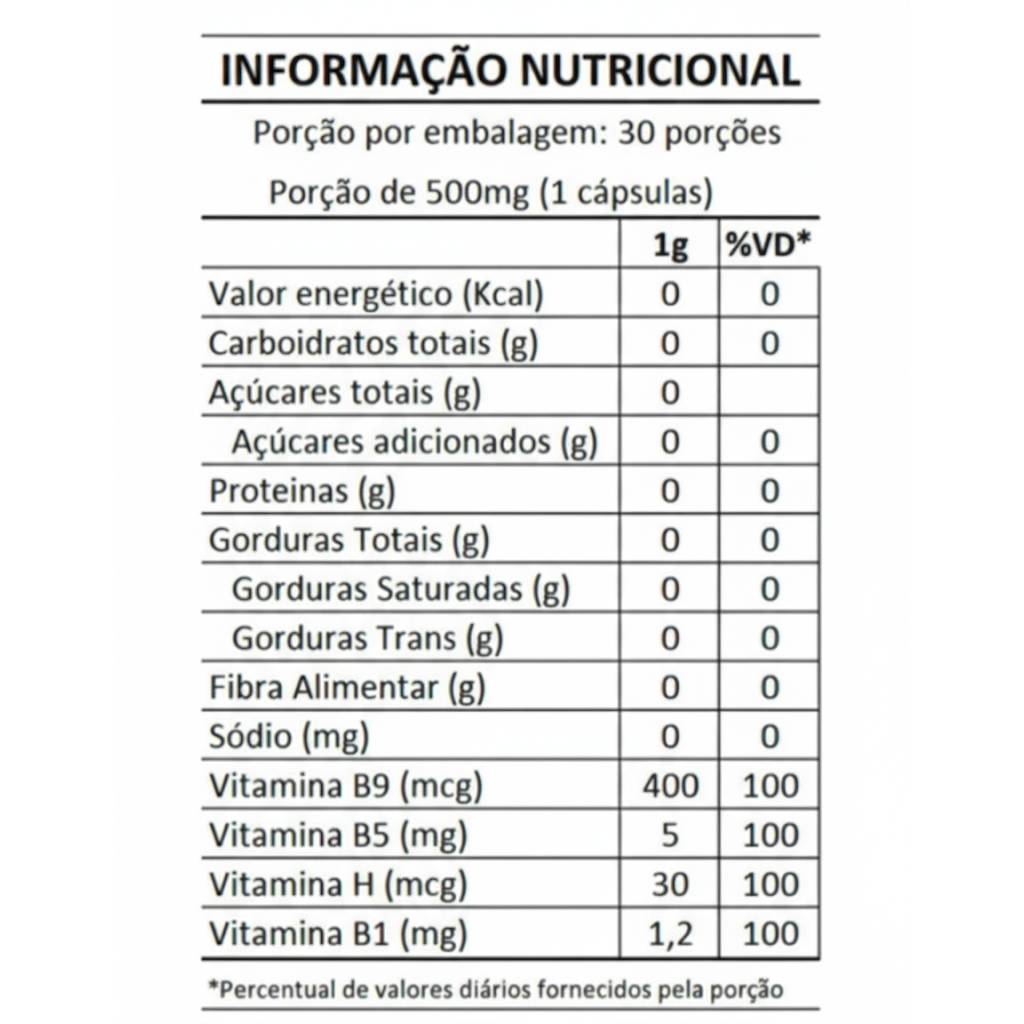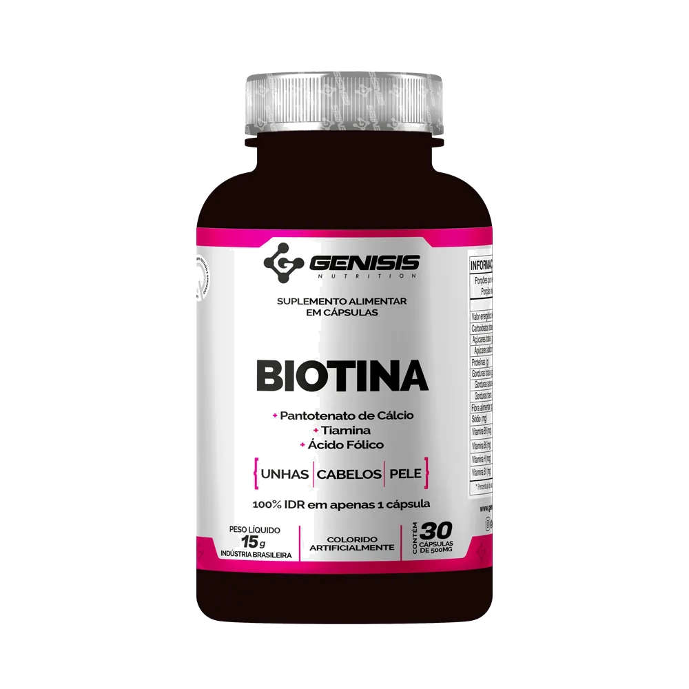 Biotina 30 Cápsulas Vitamina Cabelos Unhas Pele Zero Glúten 100% Pura Genisis Nutrition