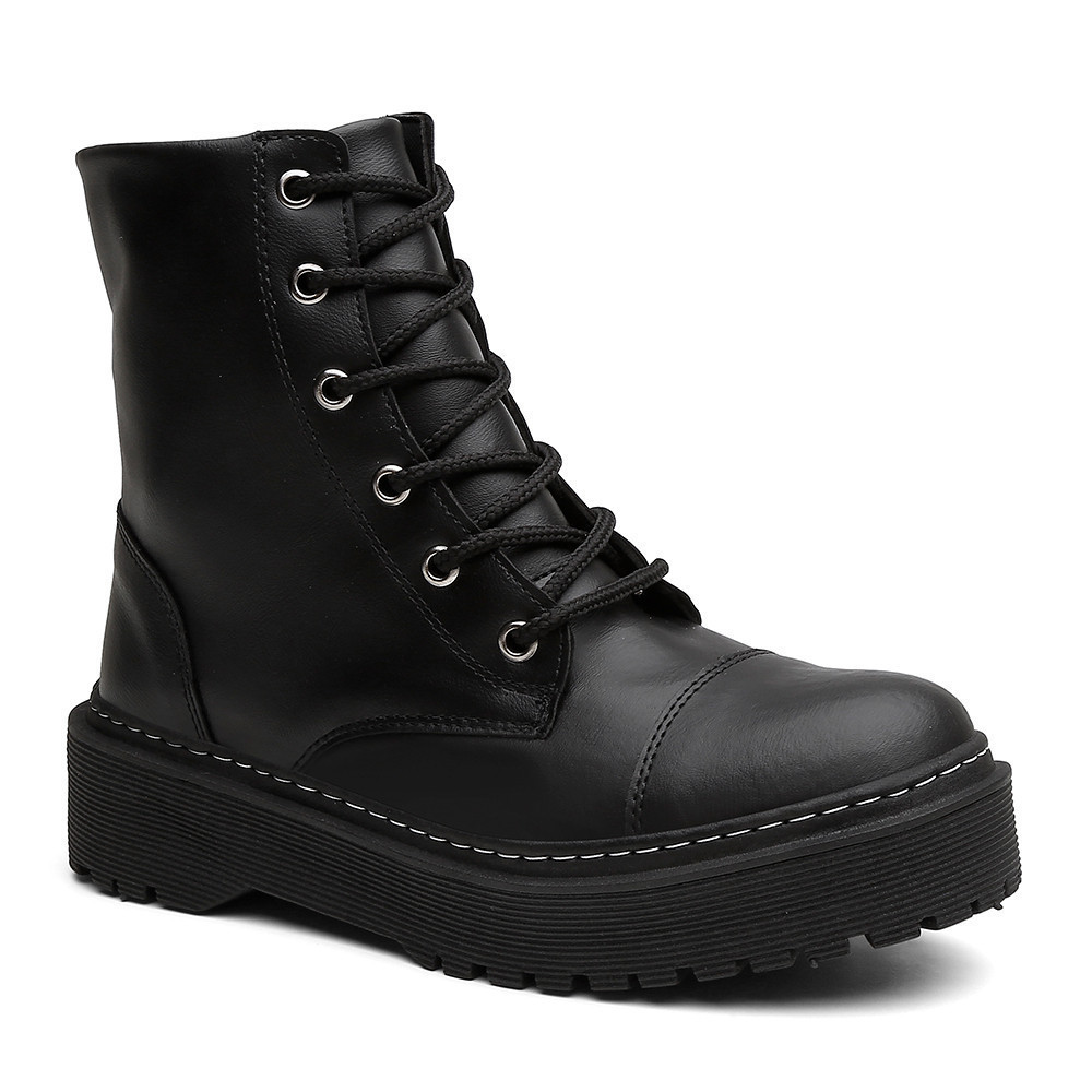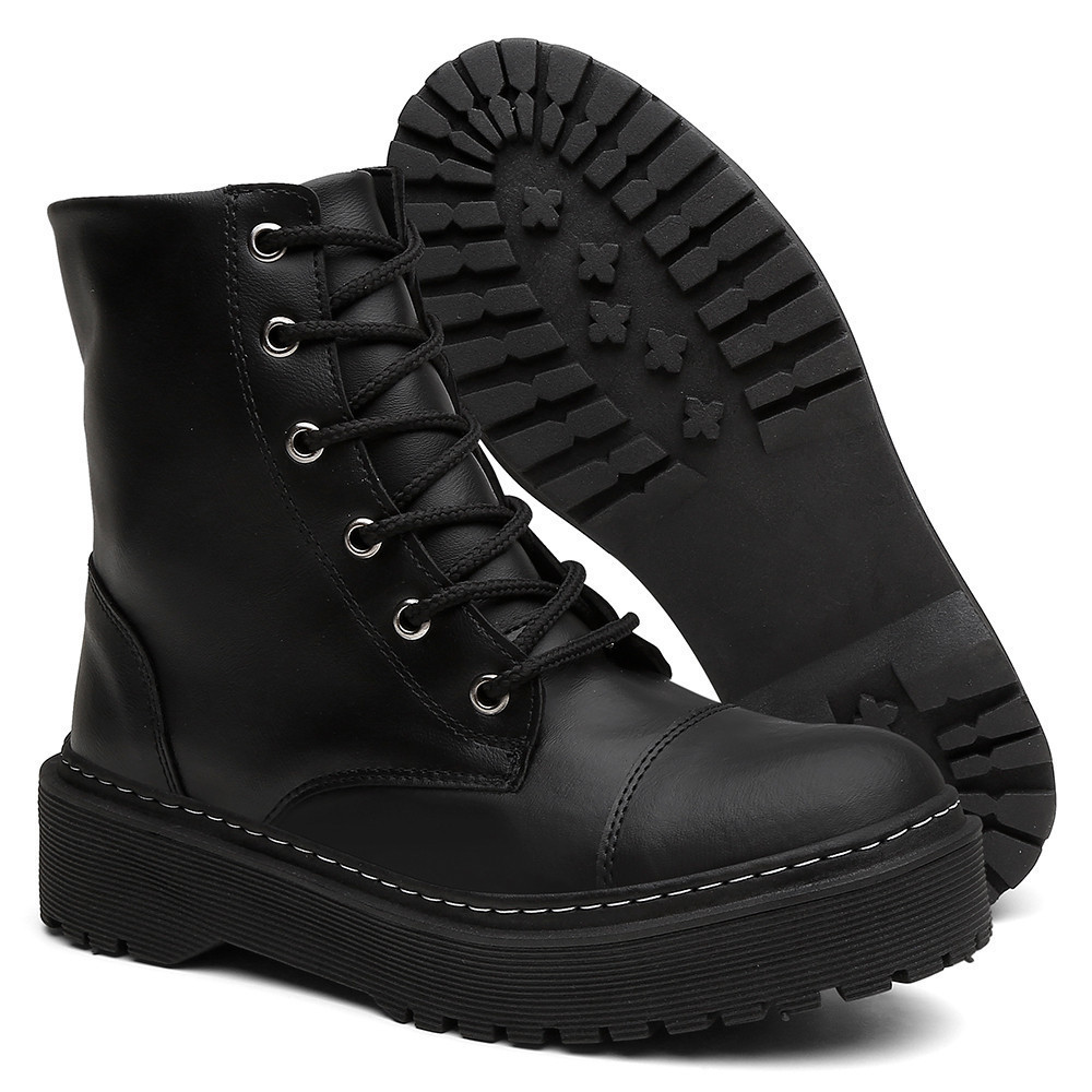 Bota Botinha Coturno Feminino Blogueira Tratorada Plataforma Confort Luxo Preto Fosco