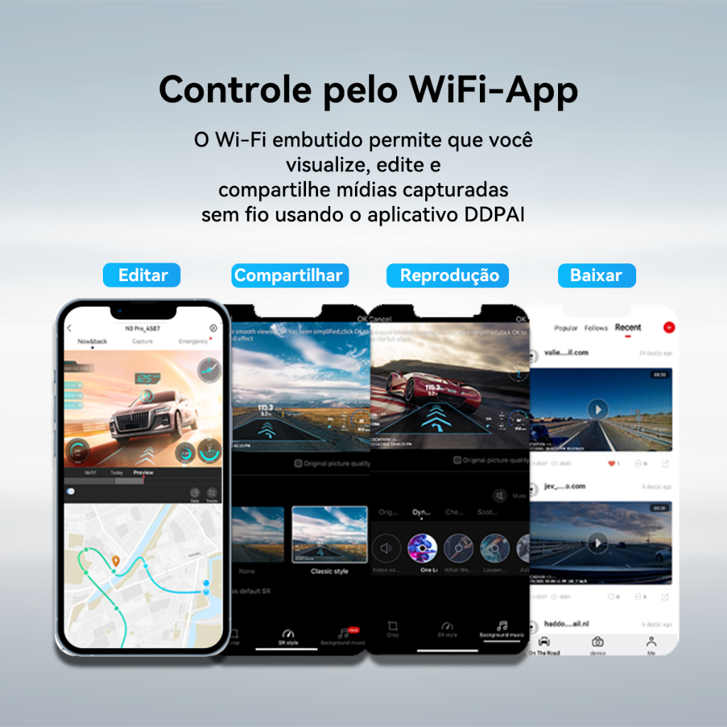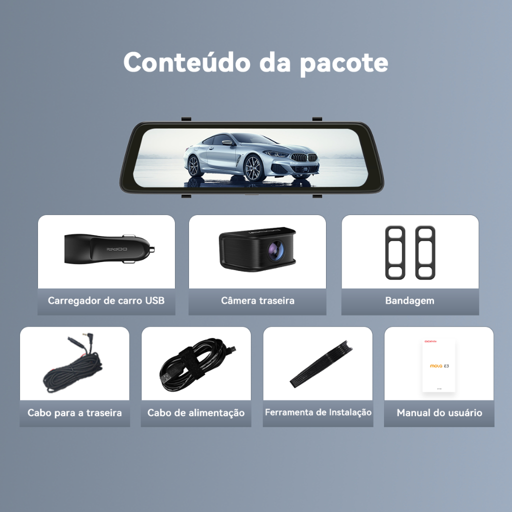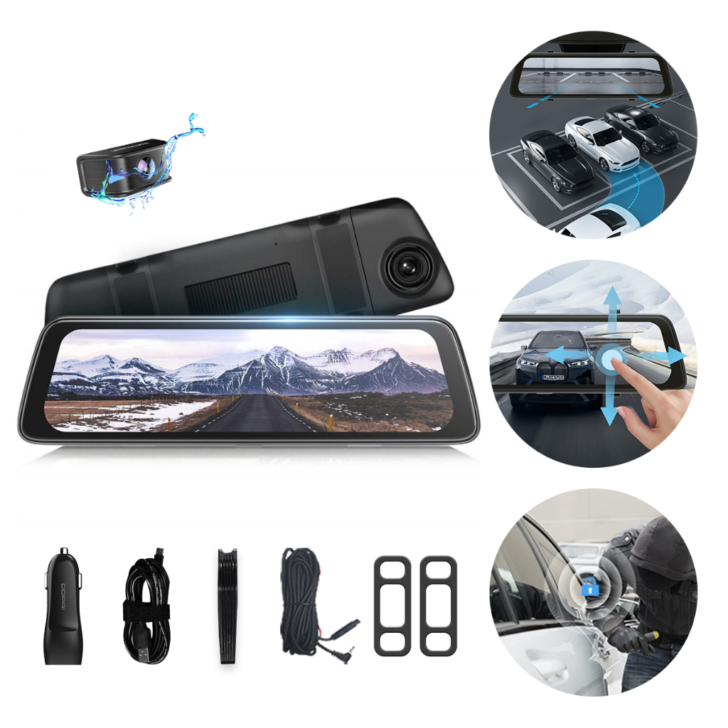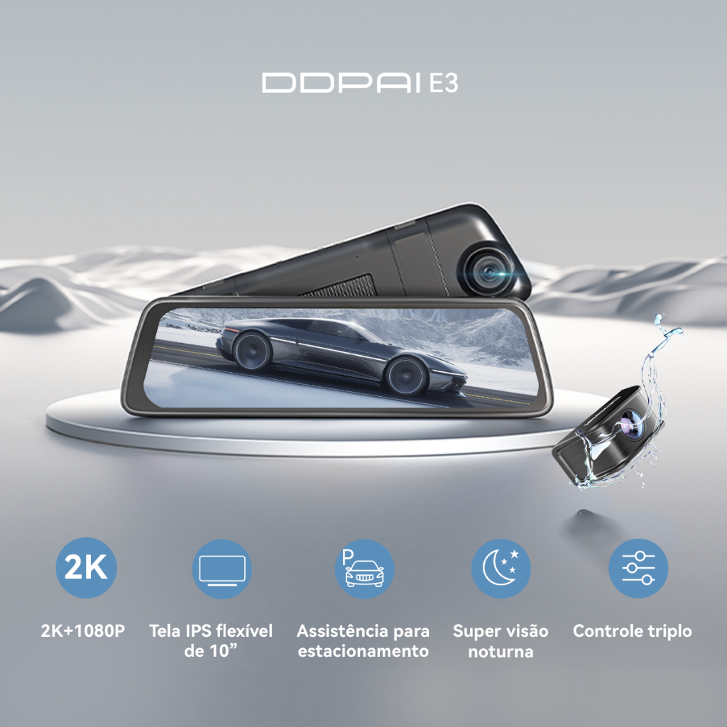 DDPAI Mola E3 Câmera Espelho Veicular 2K+1080P com Tela de 10 polegadas Controle por WIFI-APP
