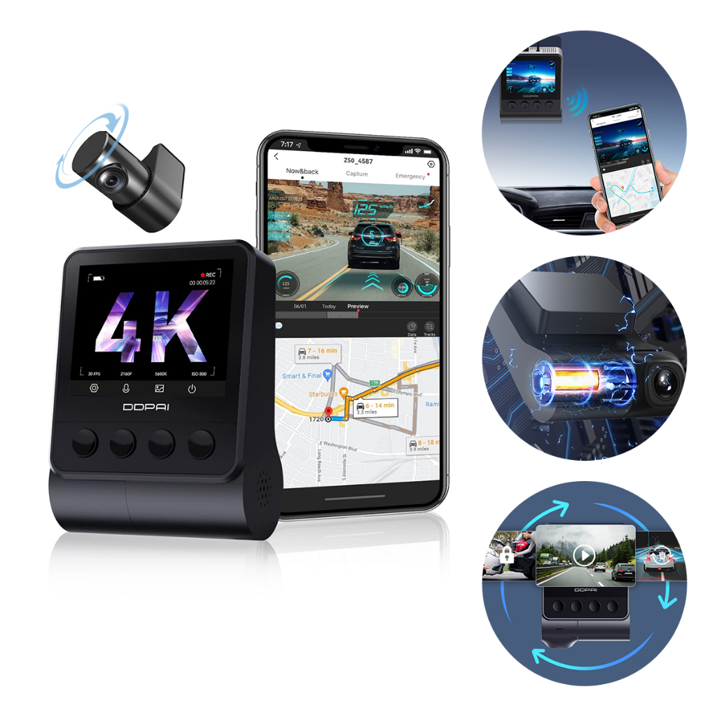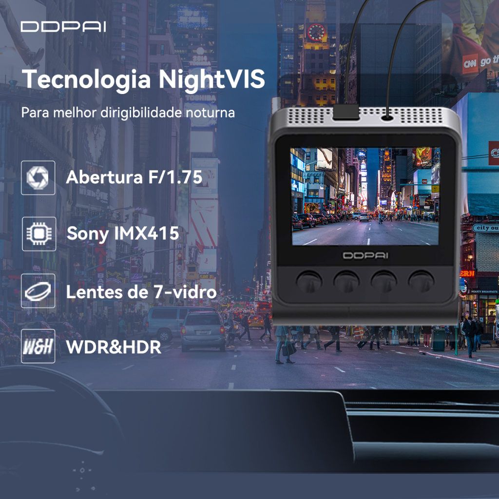 Câmera Veicular DDPAI Z50 4K+1080P Com WiFi GPS D²Save Tela 2.3" Supercapacitor Visão Noturna