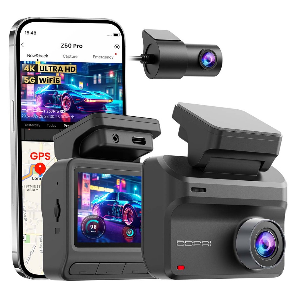 Câmera Veicular DDPAI Z50 Pro 4K+1080P WiFi 5G GPS Visão Noturna AI ISP Gravação em Loop ADAS APP