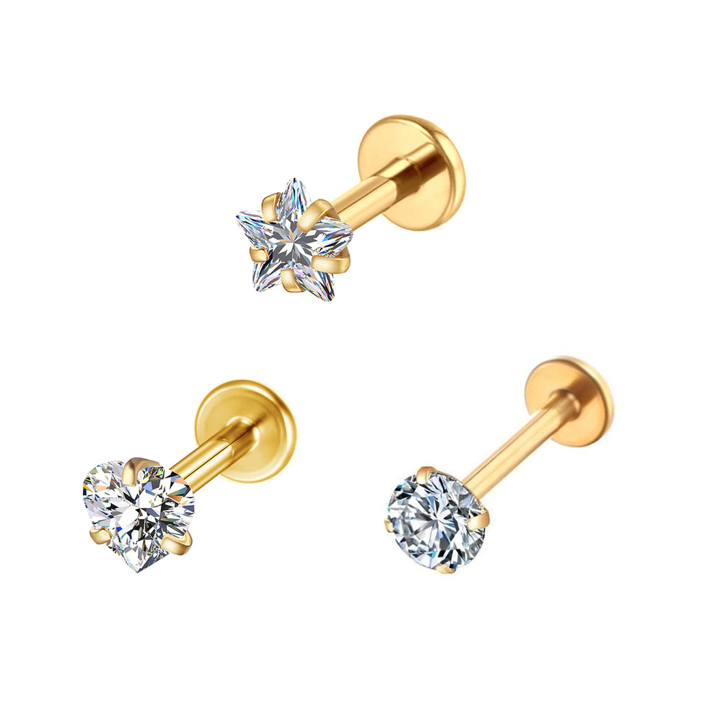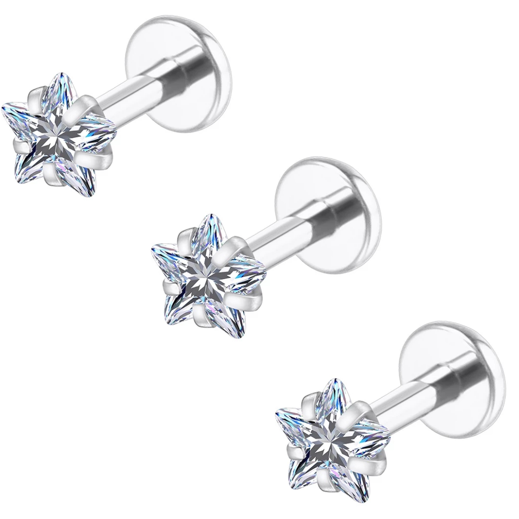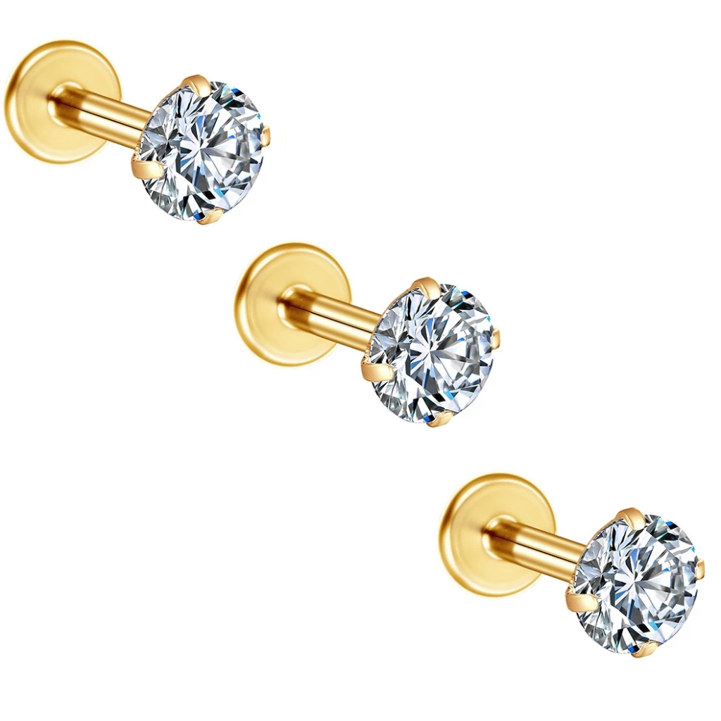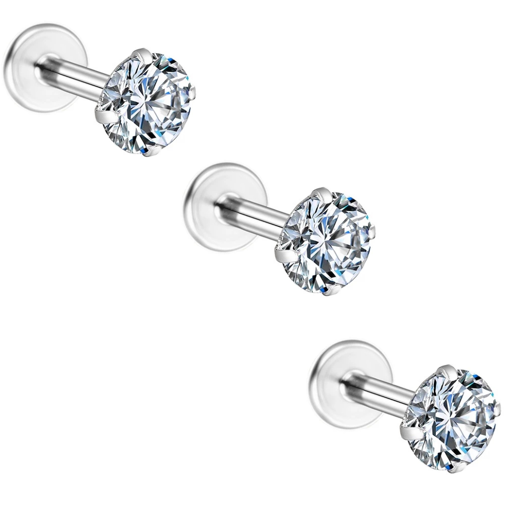 Piercing Labret Zircônia Aço Cirúrgico | Helix, Tragus, Conch, Nariz, Boca-Medusa Piercing de Orelha Tragus
