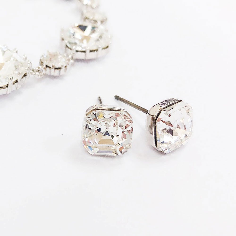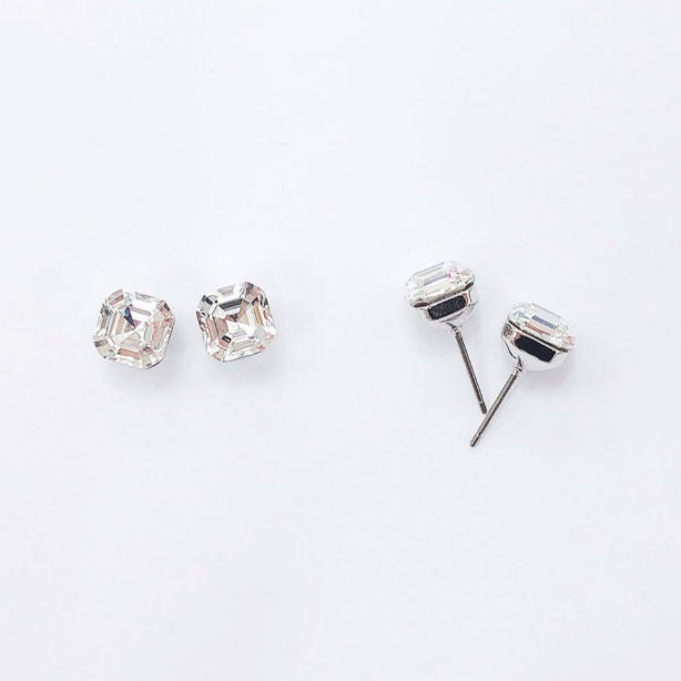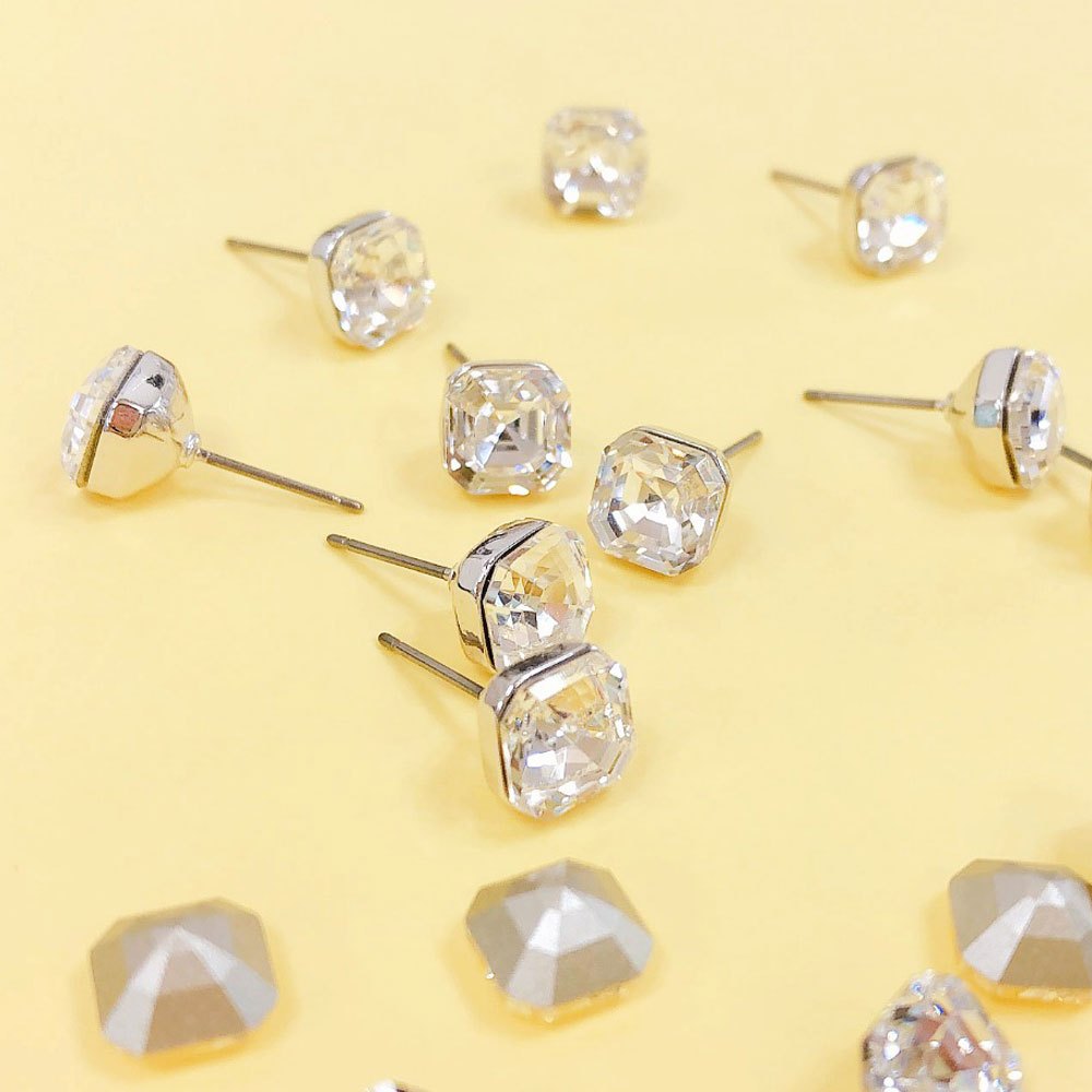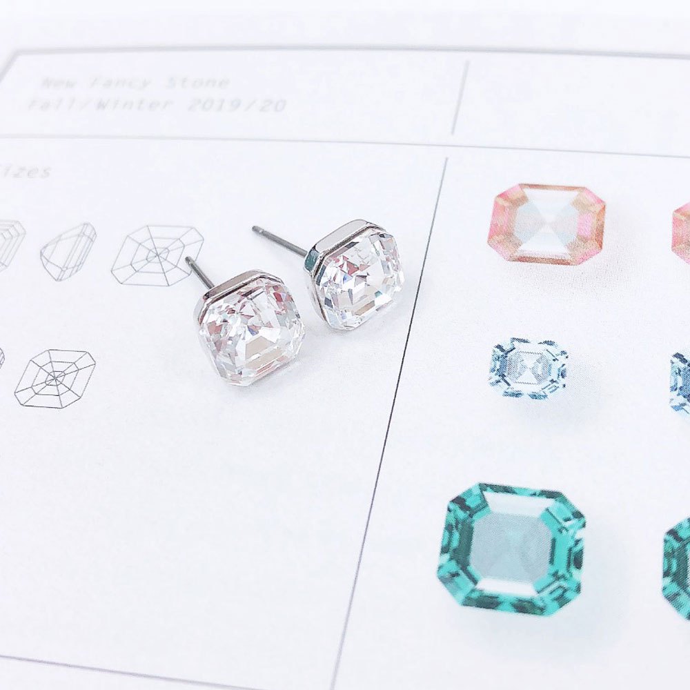 BNP Joias Cristal Austríaco Ponto Quadrado Mini Brinco Primavera Princesa Corte Declaração Post Ear Studs