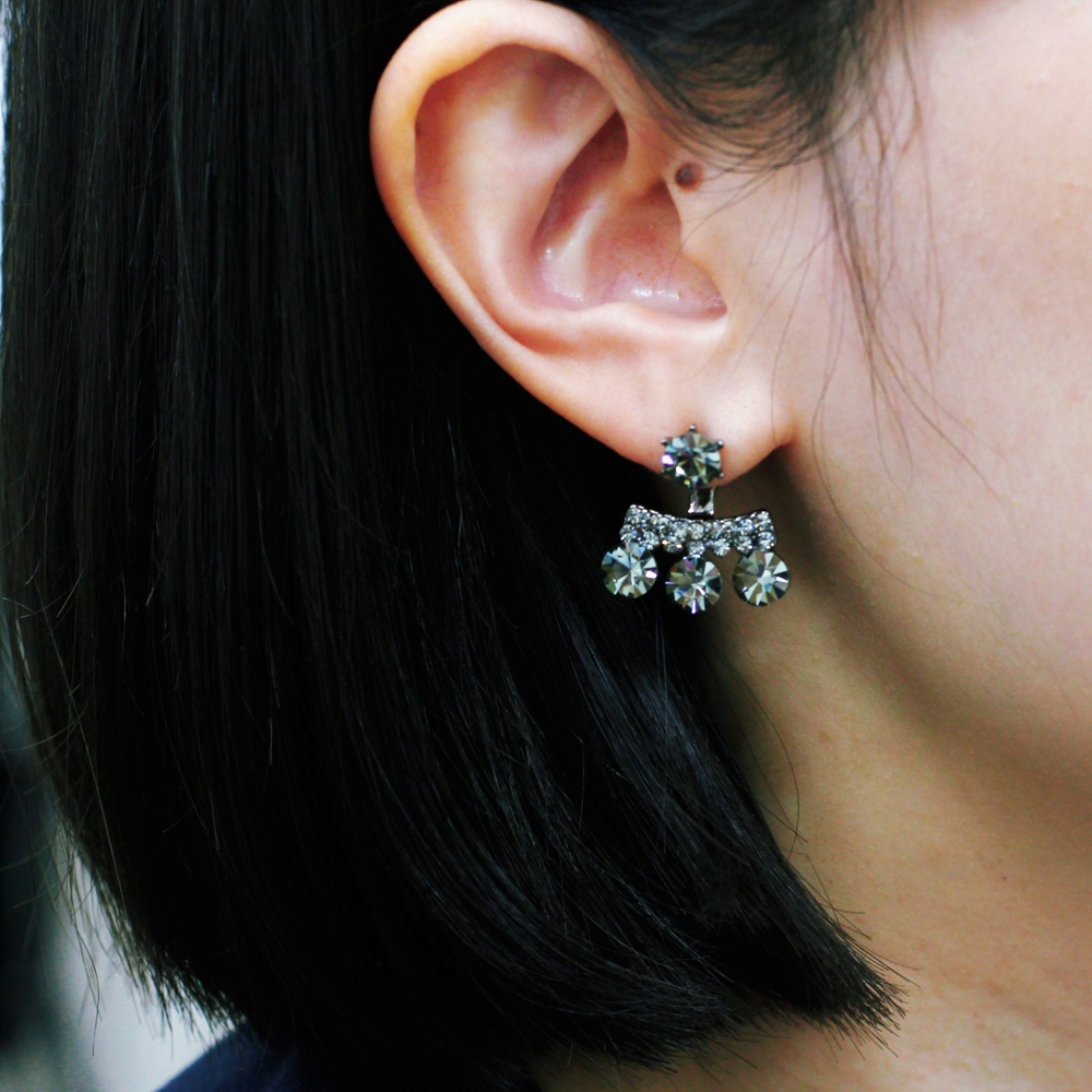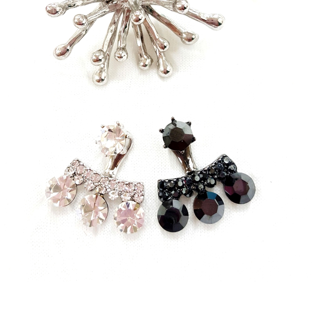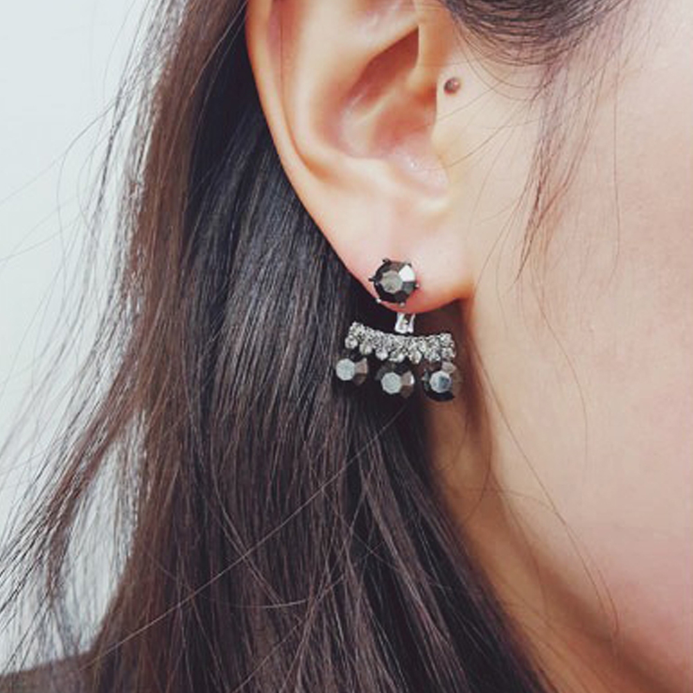 BNP Jóias Brincos Estilo Duas Maneiras Único Rock chic look Festival Fasion Cristal Preto Ousado