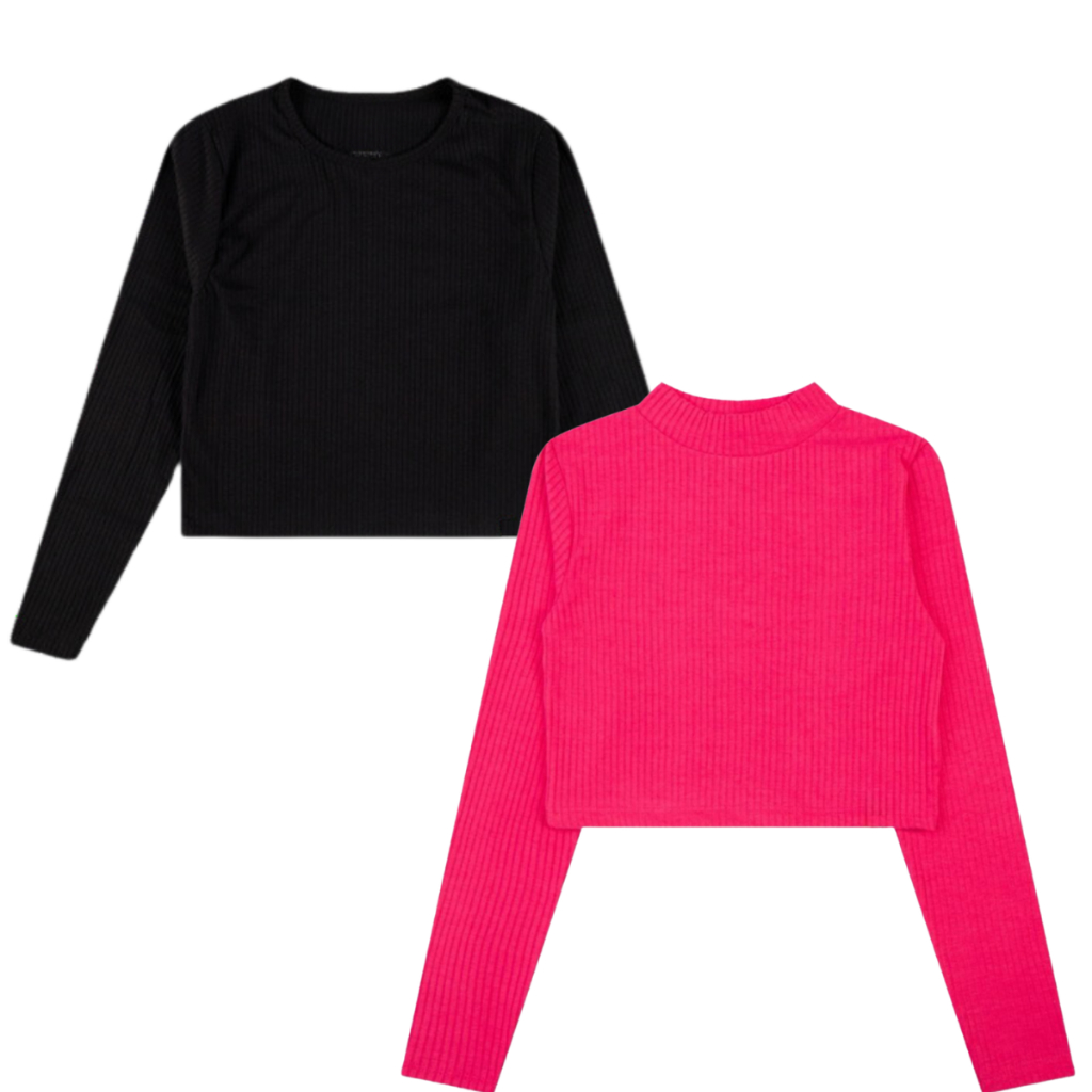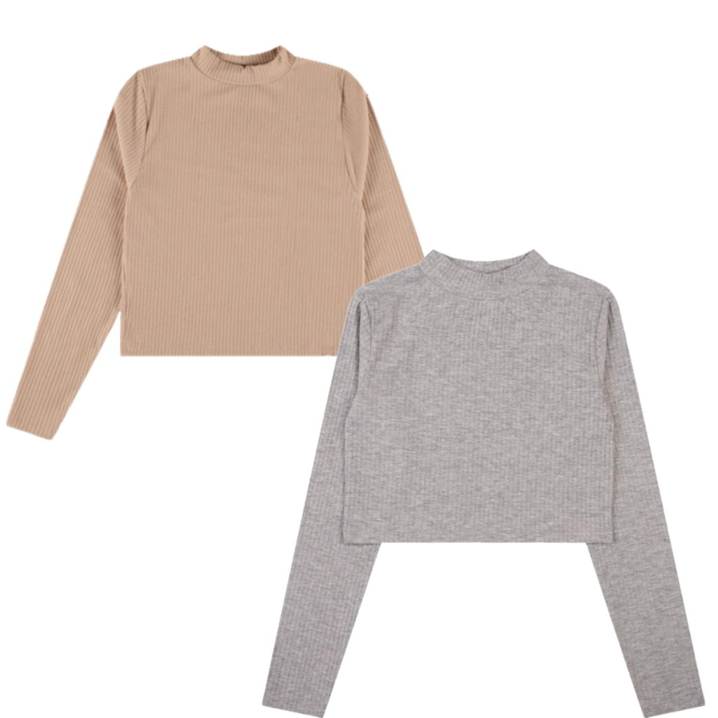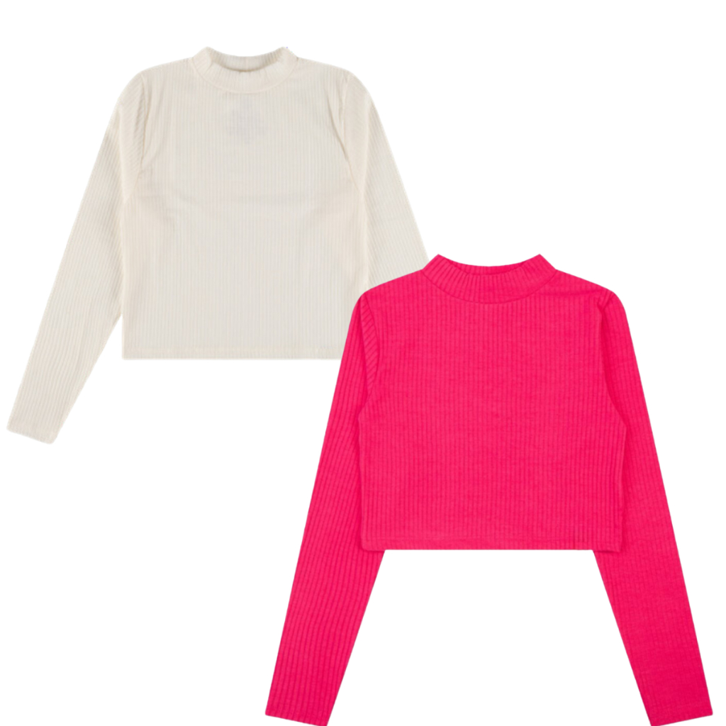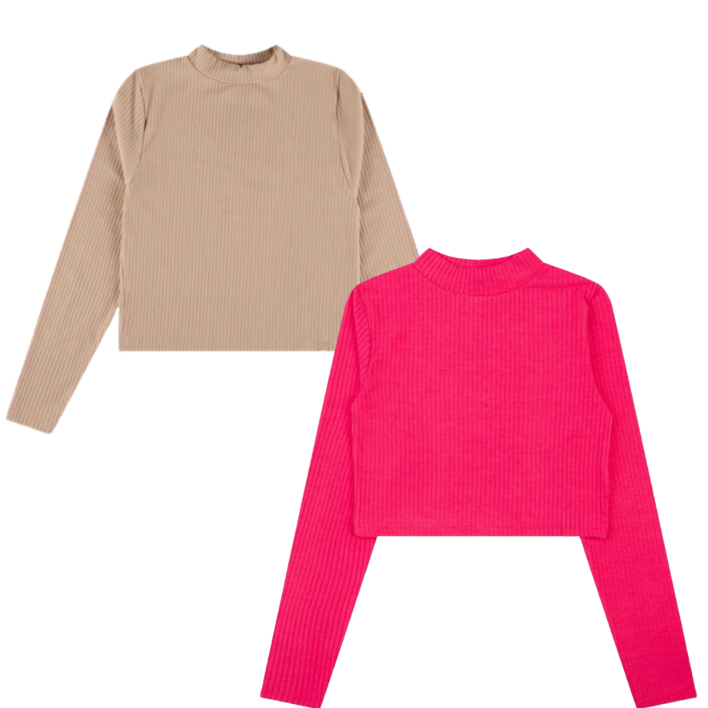 Kit 2 Blusa Cropped Canelada Gola Alta Infantil Menina Tamanho 10 ao 16