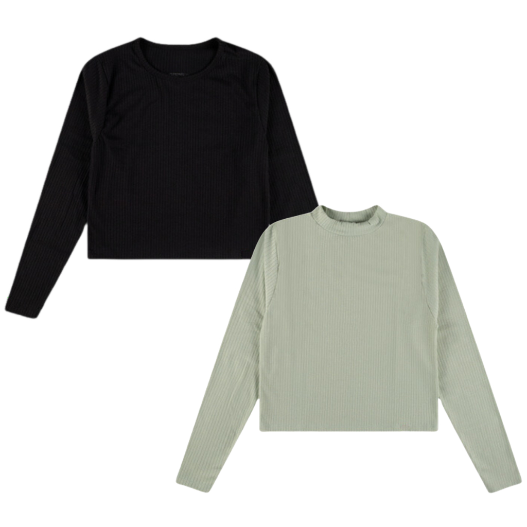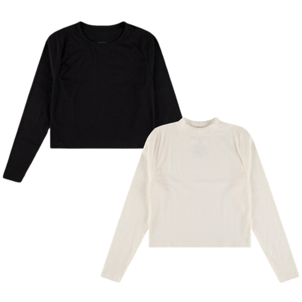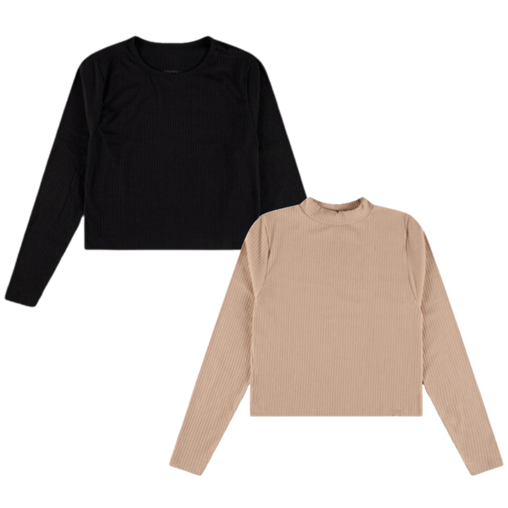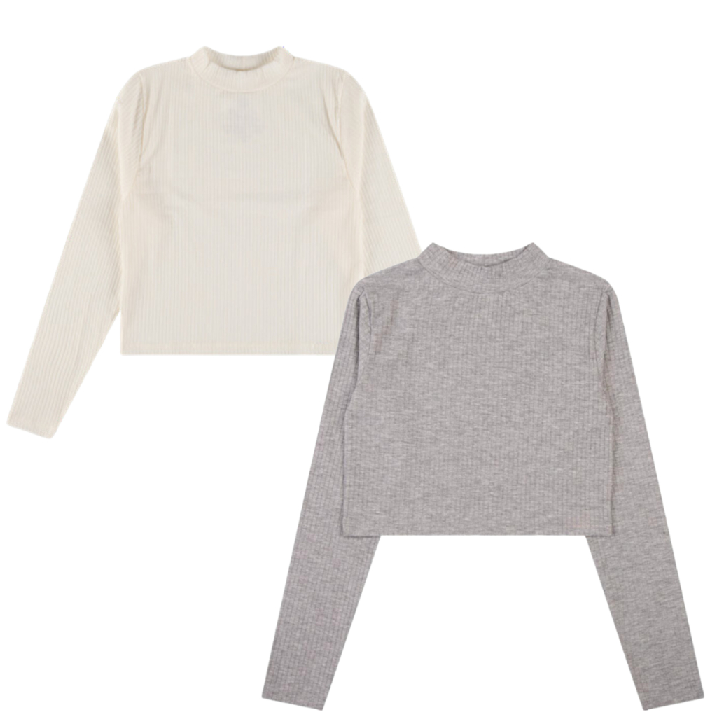 Kit 2 Blusa Cropped Canelada Gola Alta Infantil Menina Tamanho 10 ao 16