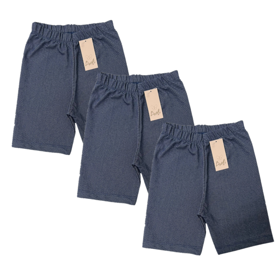 Kit 3 Bermudas Shorts Jeans Cotton Infantil Juvenil Menina Tamanho 1 ao 16