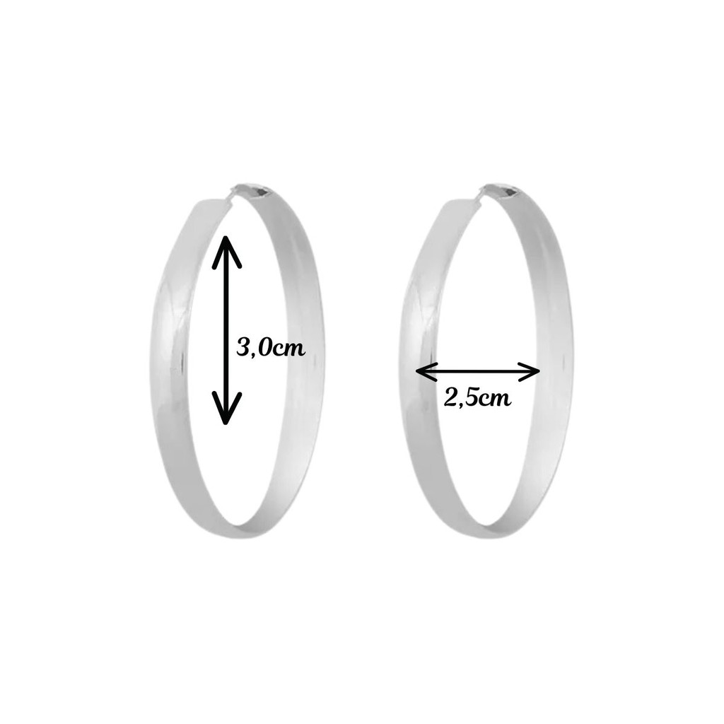 Brinco de argola laminada 3mm prata 925 legítima redonda 2,5cm
