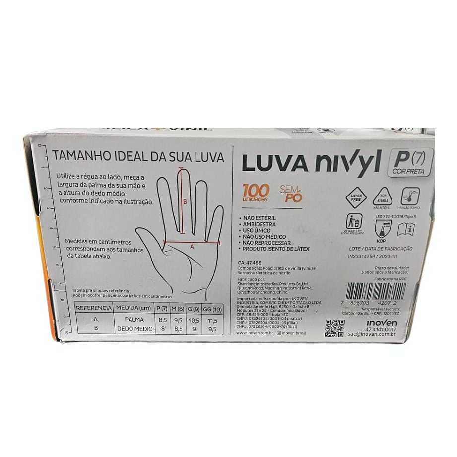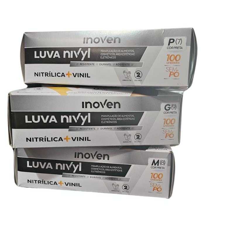 LUVA PRETA NITRILICA NYVIL INOVEN - 100 UNIDADES