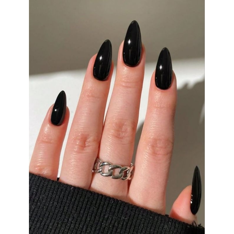 Postiça Realista Premium - Unhas Decoradas com Acabamento Natural toda preta