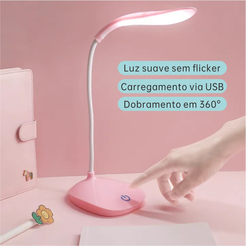Luminária de Mesa LED Dobrável USB – Recarregável, Portátil e Ajustável para Escritório e Leitura