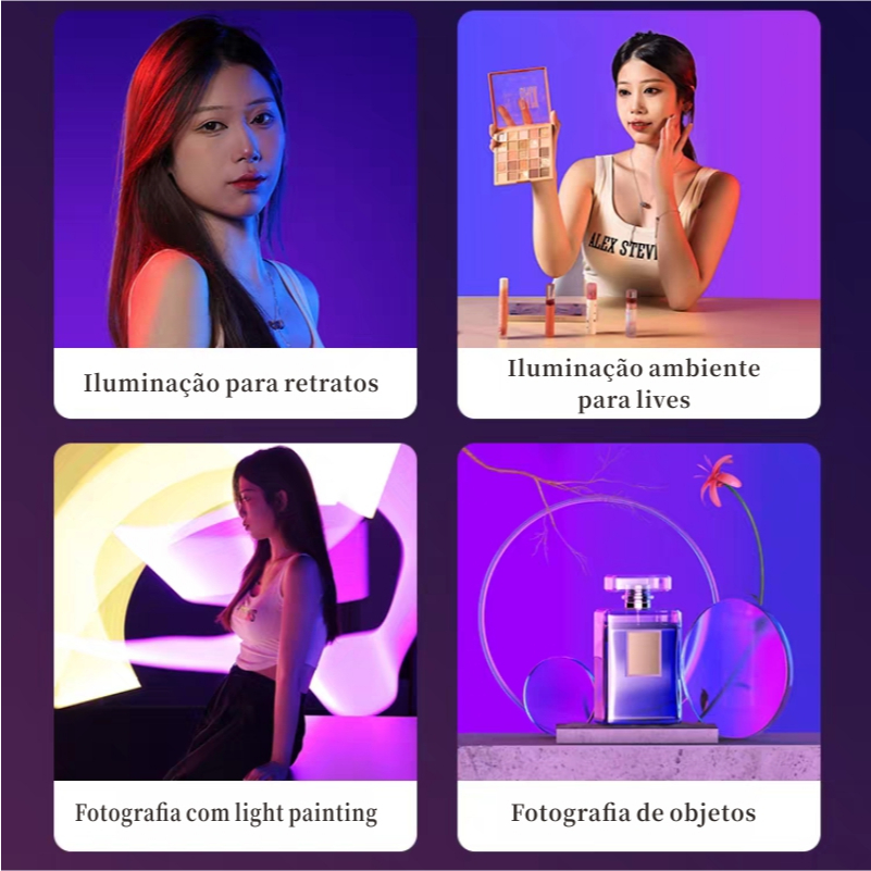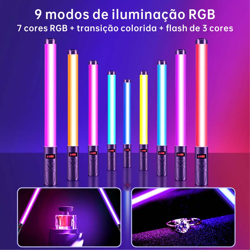 Bastão de LED RGB para Fotografia, Portátil com Controle Remoto