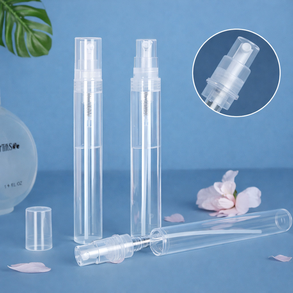 Kit 20 Frascos Plástico Provador Porta Perfume 10ml com Spray Transparente