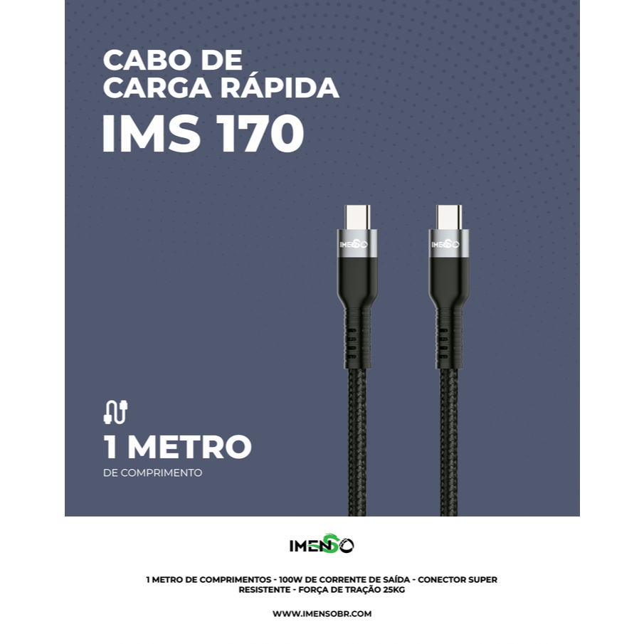 Cabo Imenso Original Ims-170 Type-c/type-c 100w 1m Nylon Trançado