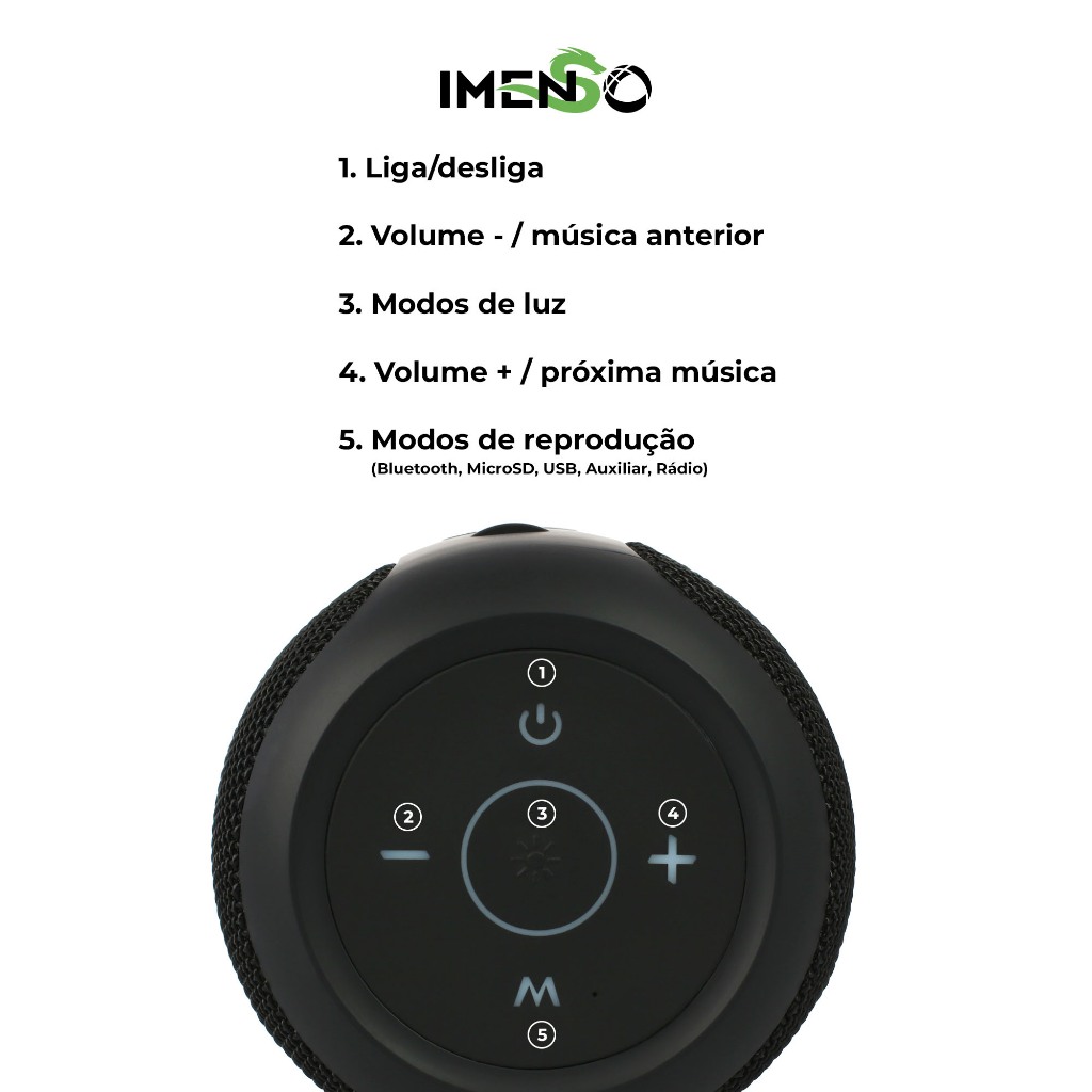 Caixa De Som Bluetooth IMENSO X30 RÁDIO FM 10w 3000mah Ipx5
