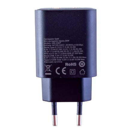 Carregador Imenso Original C/ 2 Saídas Type-c/usb-a Bivolt 30w