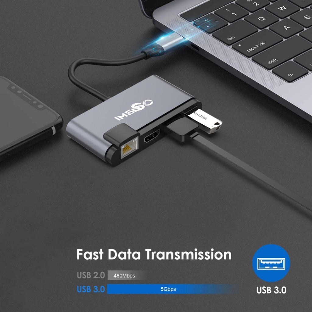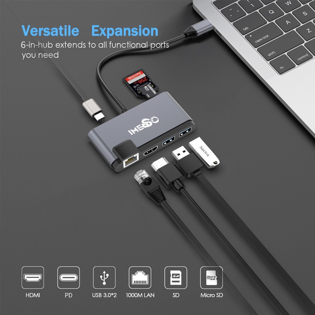 Adaptador Hub Imenso Original 7 Portas 2 Usb-a 1 Hdmi 1 Rj45 1 Usb-c