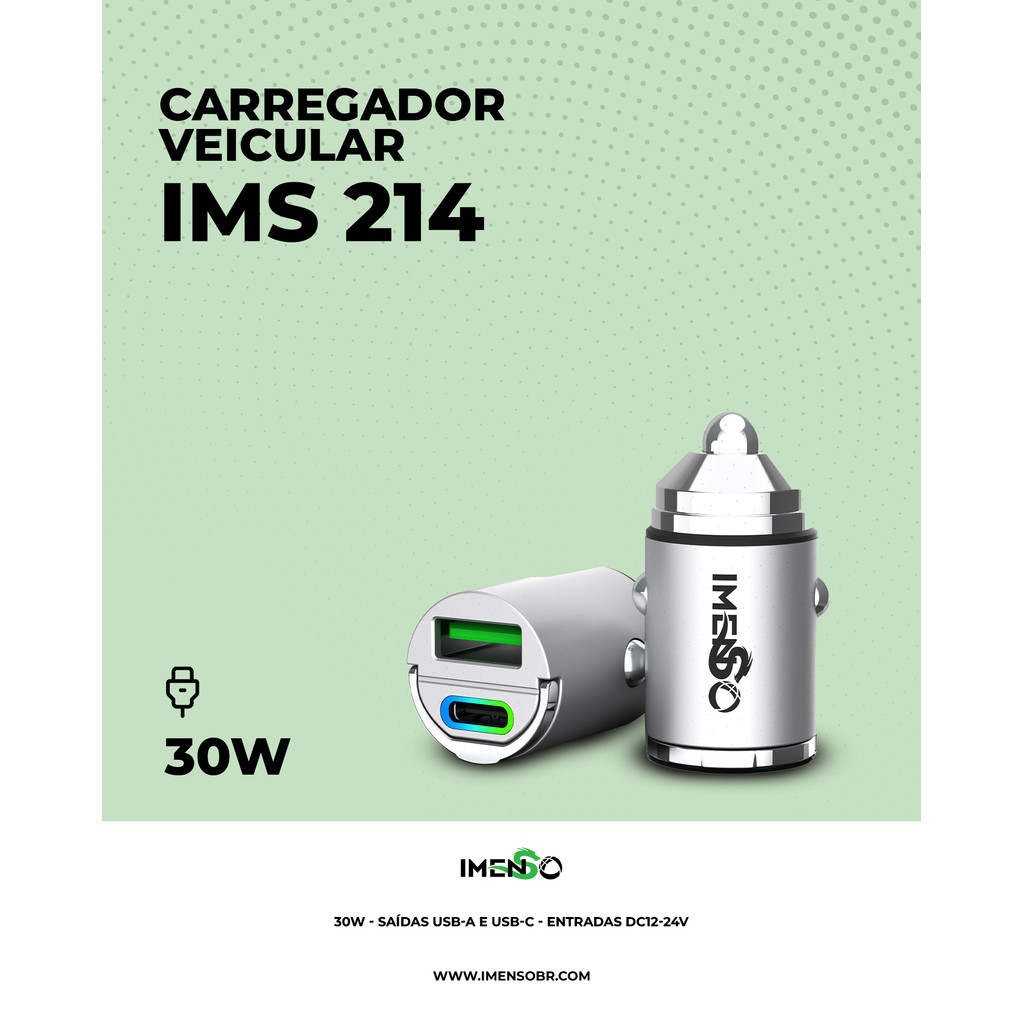 Carregador Veicular Imenso Original 30w Fast Turbo 3.0 Slim