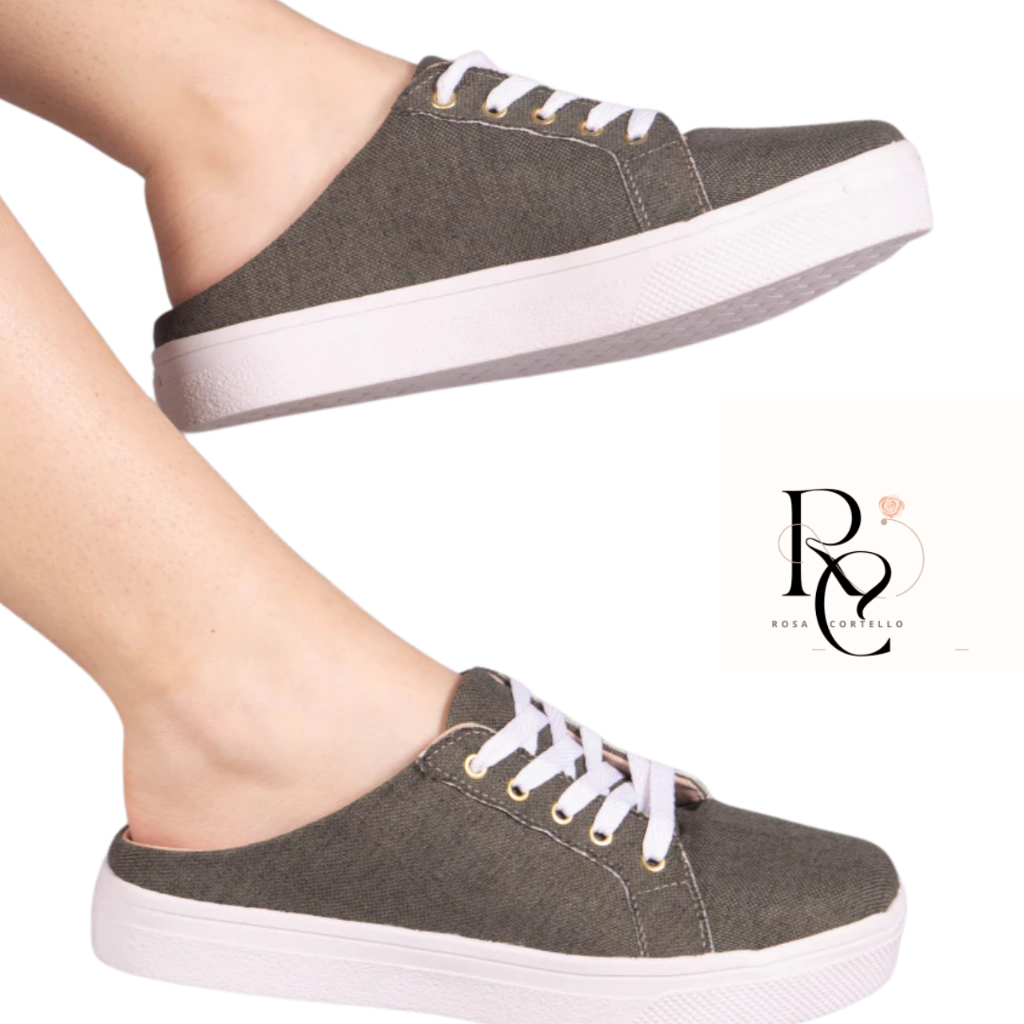 Tênis Feminino Mule Babuche Aberto Casual Moderno com Cadarço Sola Leve Antiderrapante