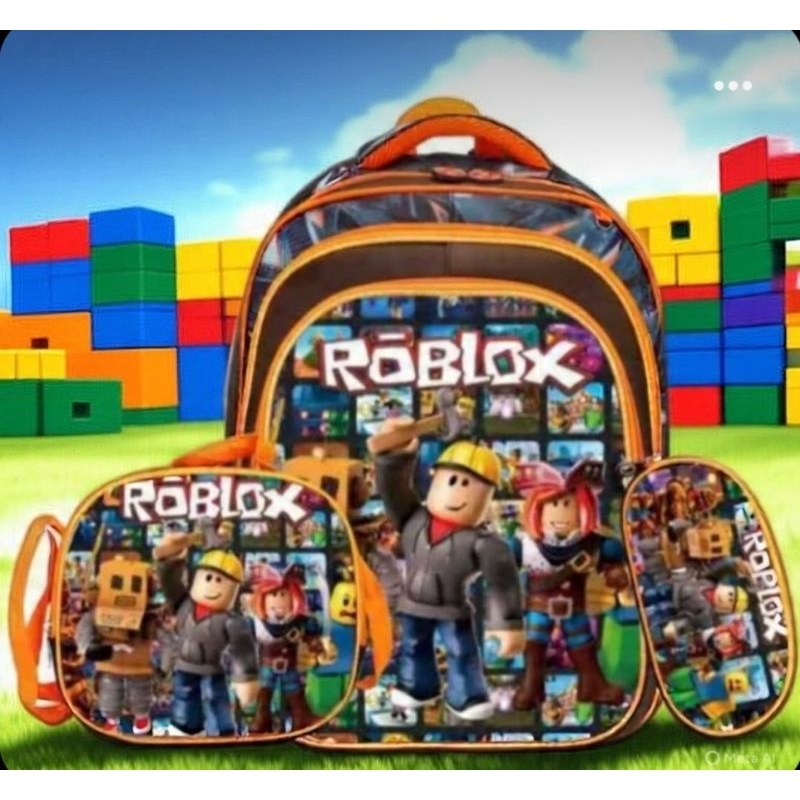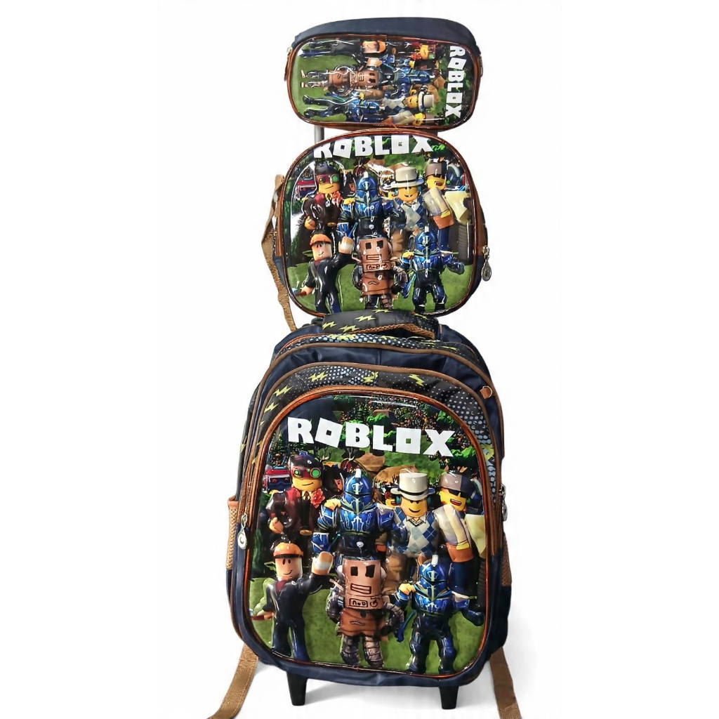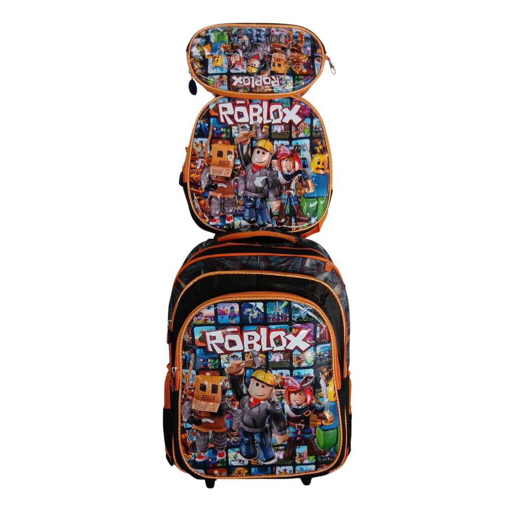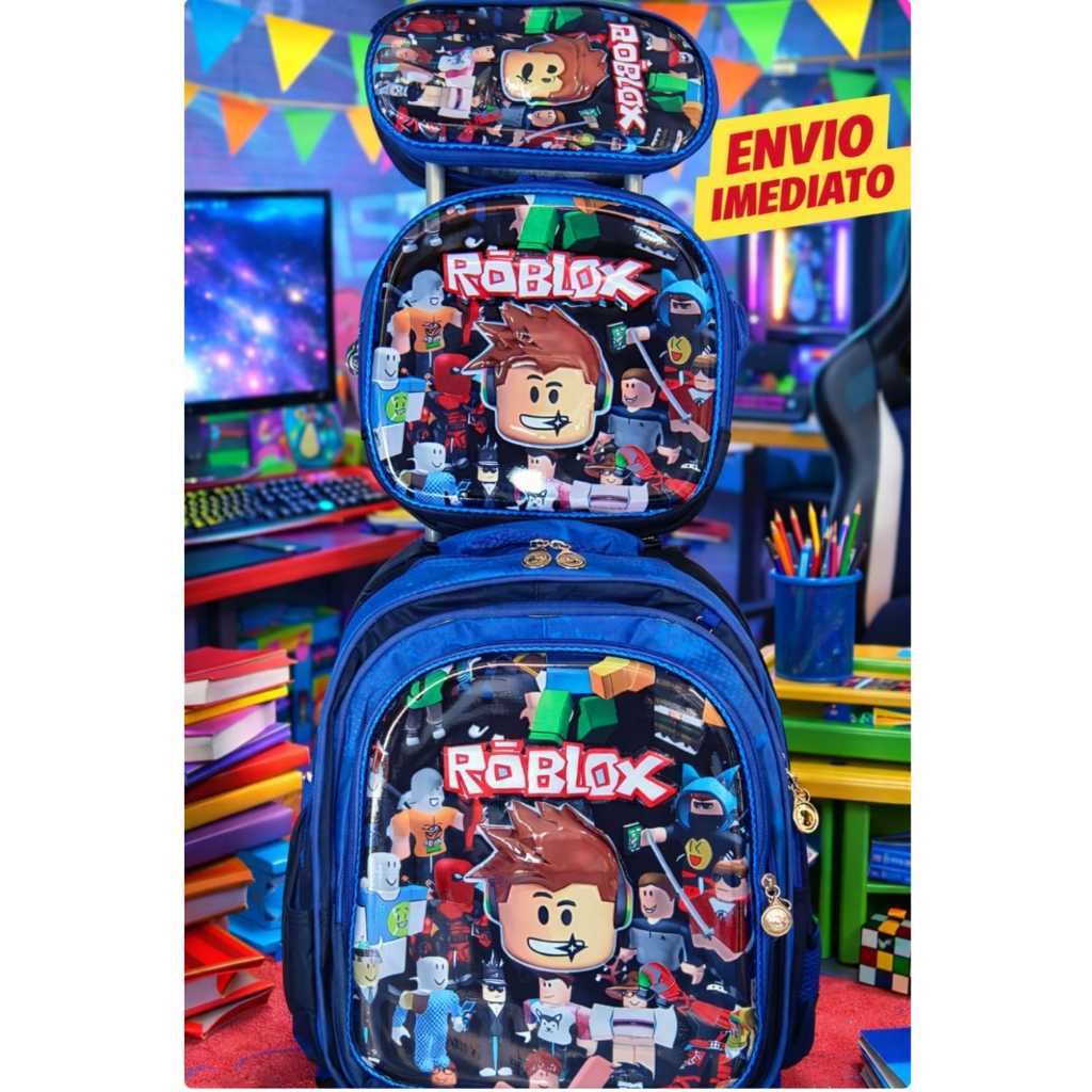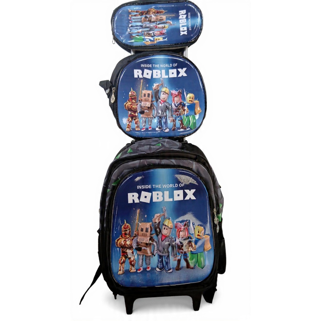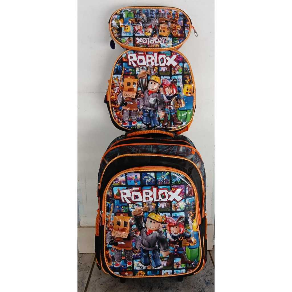 Kit Mochila Escolar Personagens Infantil Com Lancheira Térmica e estojo Mochila com rodinhas Roblox Lego