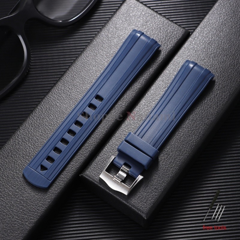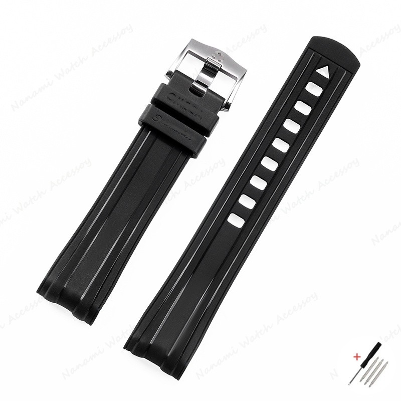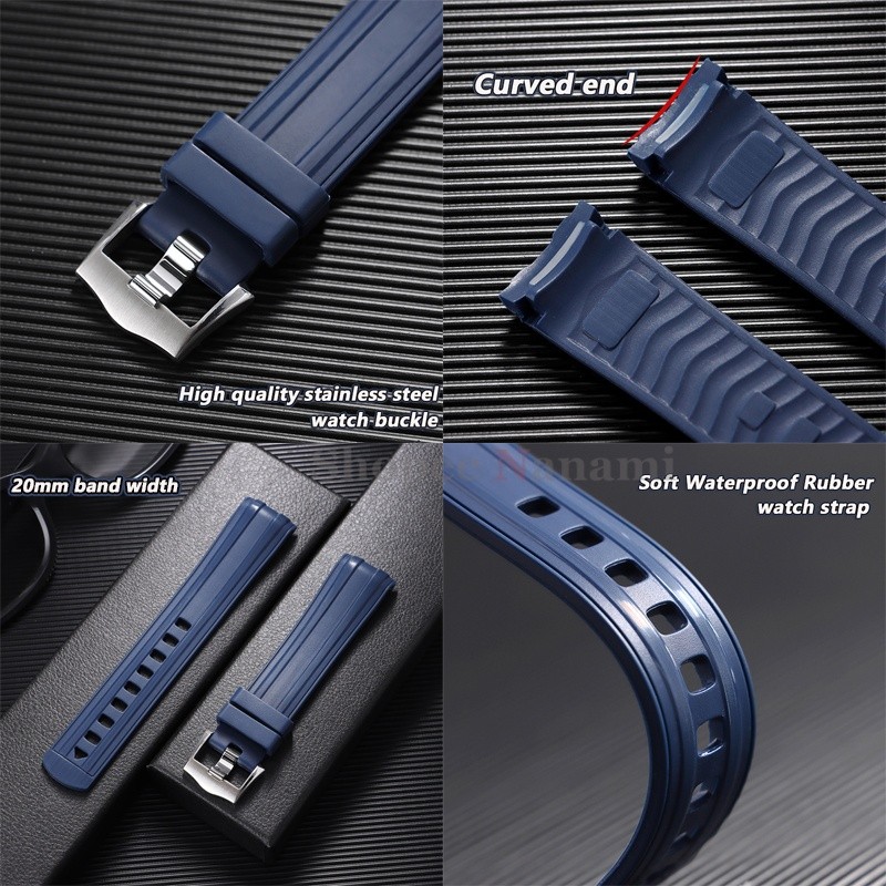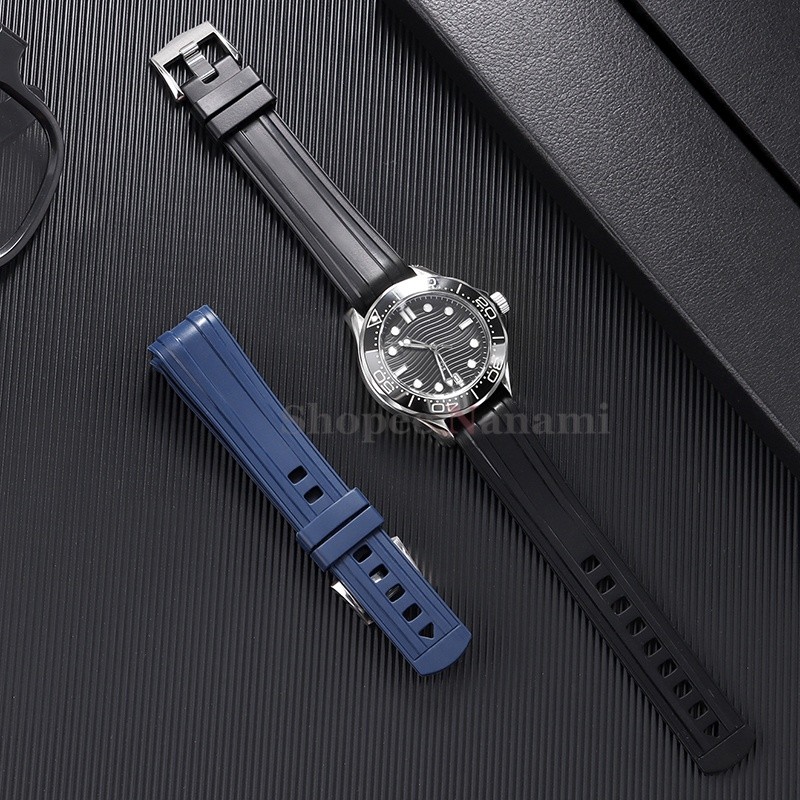Pulseira De Relógio Macia De Borracha Com Extremidade Curvada De 20 Mm Para Seamaster 300 Silicone À Prova D'água De Mer