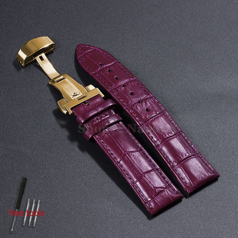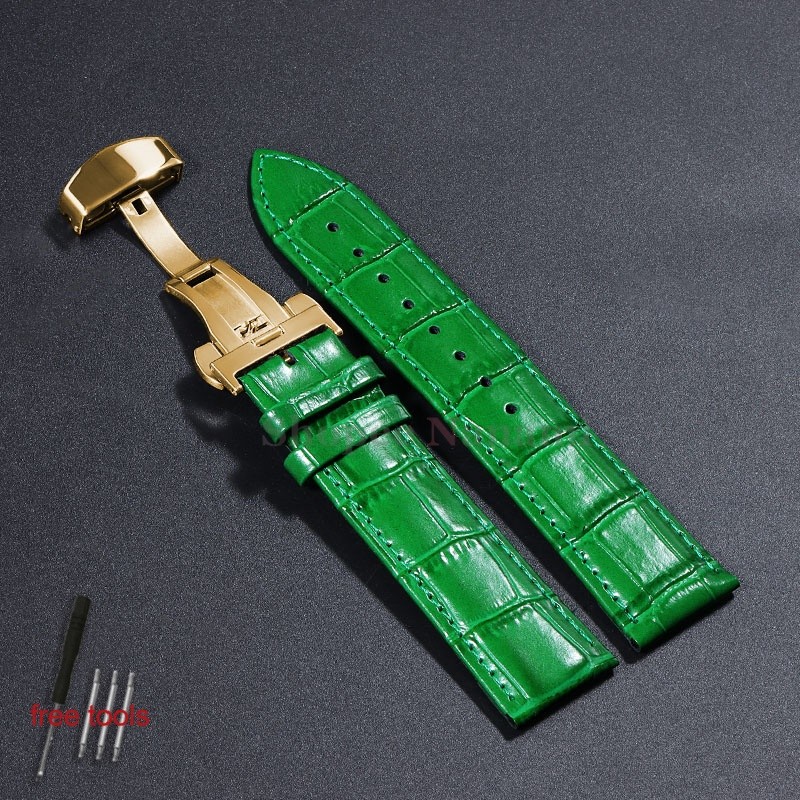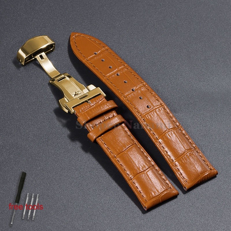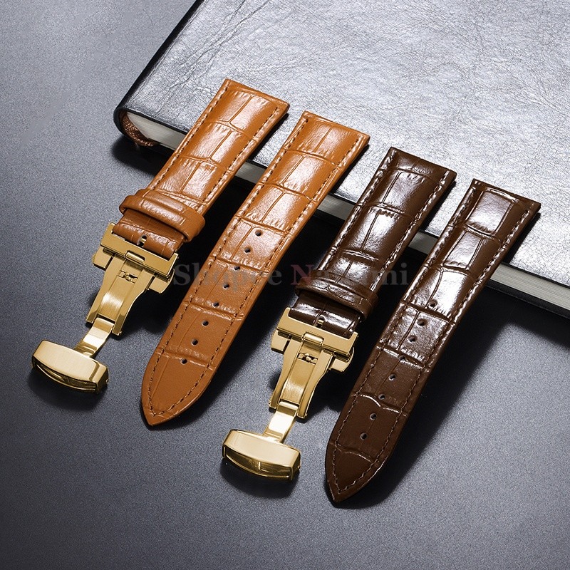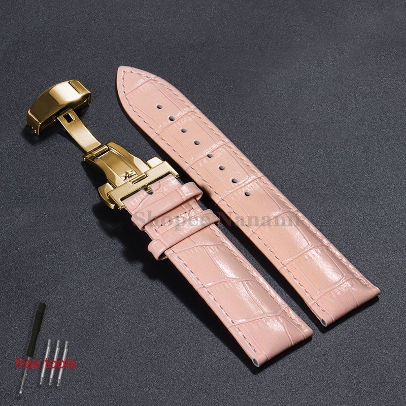 Pulseira Universal De Couro De Bezerro Genuíno De 12-24mm , 12 14 16 17 18 19 20 21 22 Fivela Borboleta , Padrão De Bamb