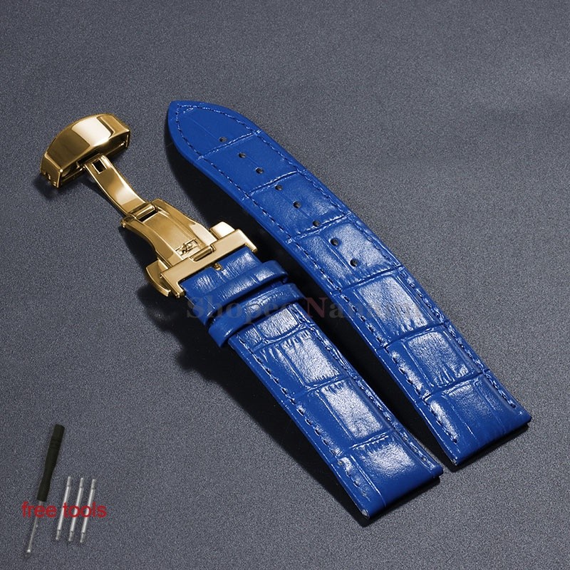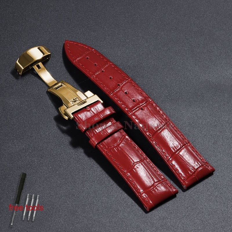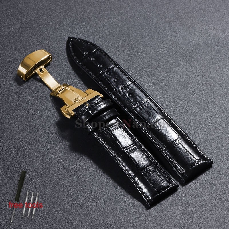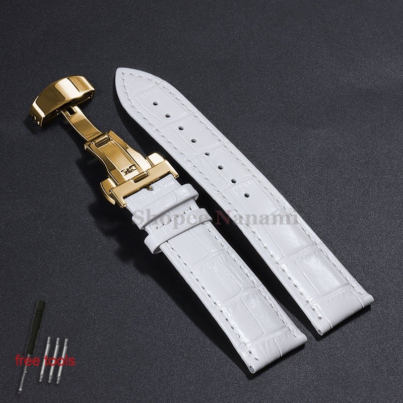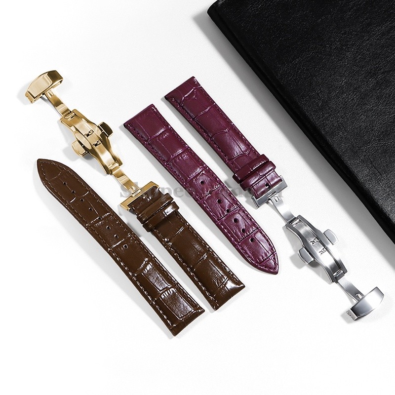 Pulseira Universal De Couro De Bezerro Genuíno De 12-24mm , 12 14 16 17 18 19 20 21 22 Fivela Borboleta , Padrão De Bamb