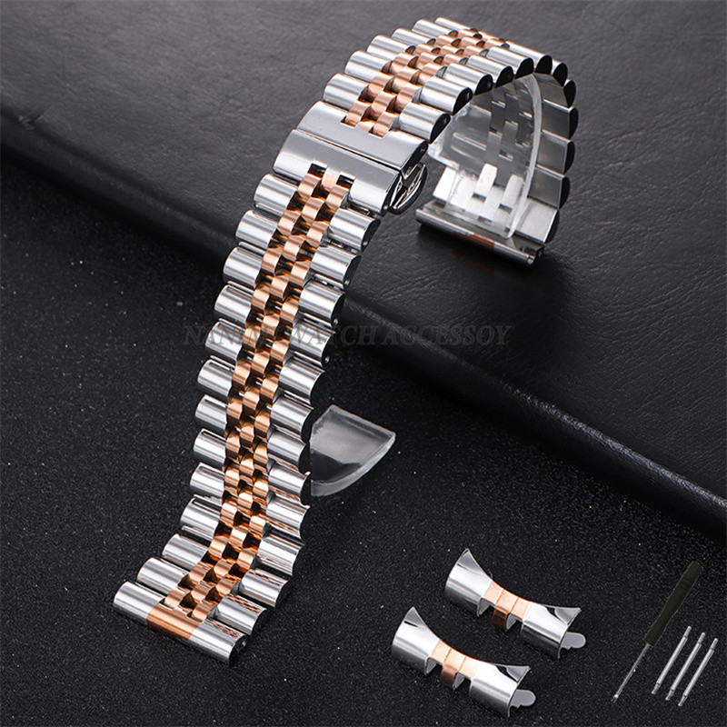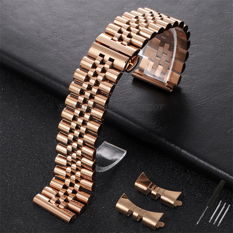 Pulseira De Relógio De Aço Inoxidável Sólido De Luxo 12/13/14/16/17/18/19/20/21/22mm Universal Flat Curved End Clássico