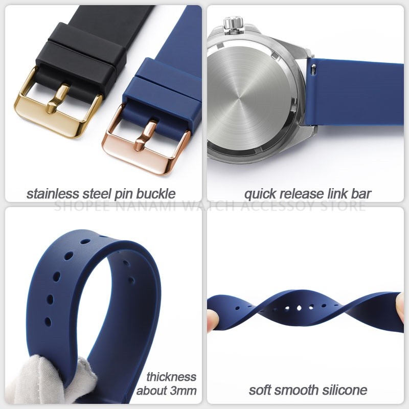 Pulseira De Relógio Esportivo De Silicone 16mm 18mm 20mm 22mm Colorida Macia À Prova D'água De Borracha Liberação Rápida