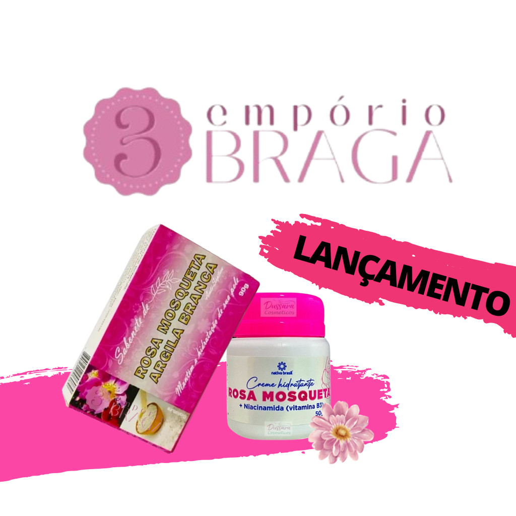 Kit Rosa Mosqueta Sabonete + Creme Hidratante Clareador Natural de Pele (2 itens)