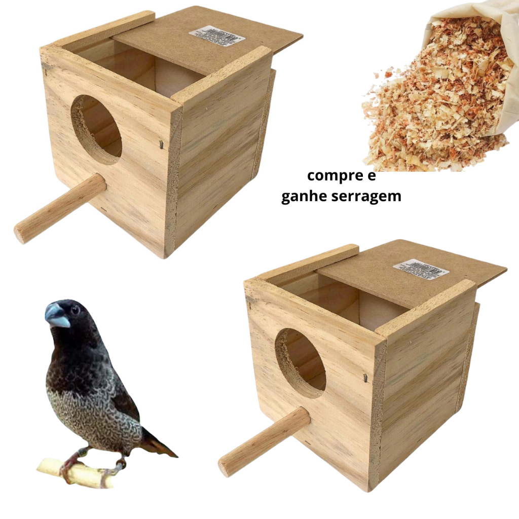 Kit 2 Ninho de Madeira Para Manon Reprodução Criação + Serragem