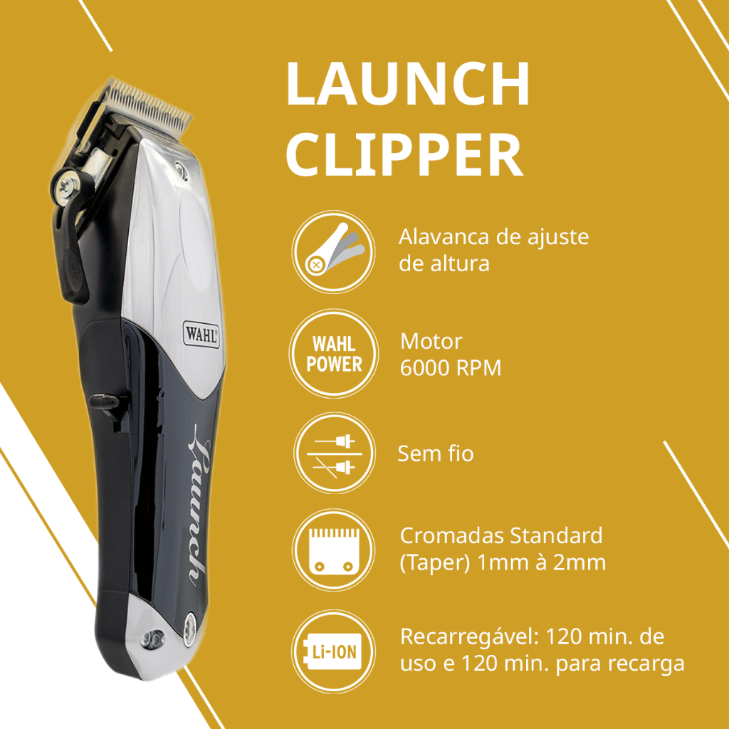 Wahl Maquina de Corta Cabelo Launch Clipper Sem Fio Profissional Barbeiro Bivolt Motor 6000 RPM