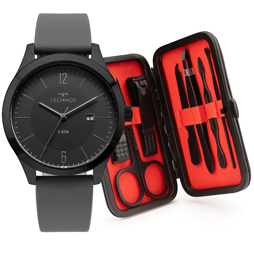 Kit Technos Masculino Steel Preto - 2115MOU/K2P