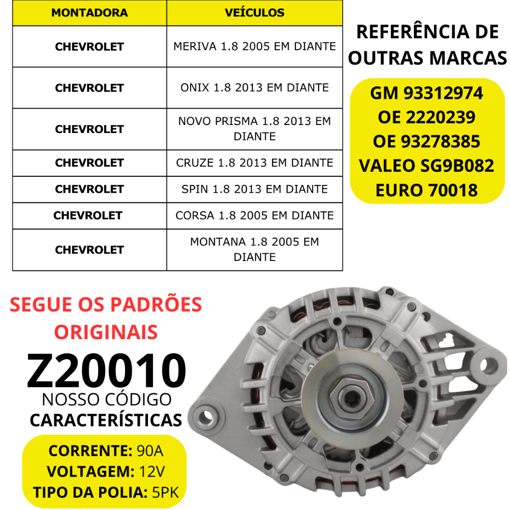 Alternador 90A Para Chevrolet Meriva Corsa Montana Onix Cruze Prisma Spin 1.8 2005 Em Diante