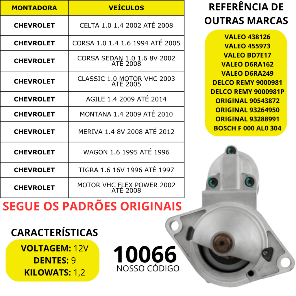 Motor de Arranque Partida Para Chevrolet Celta Corsa Meriva Montana 1.0 1.4 1.6 1994 Até 2012