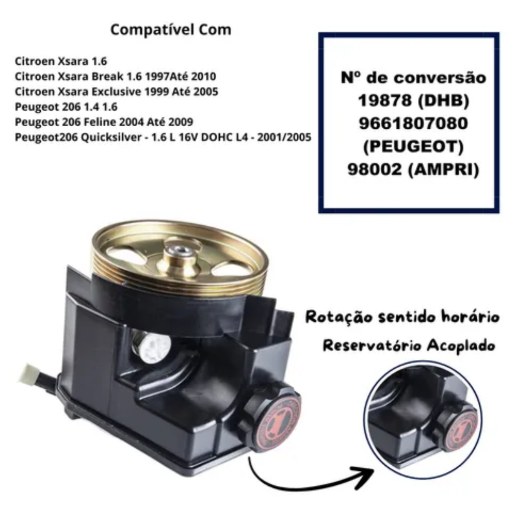 Bomba de Direção Hidráulica Peugeot 206 207 1.4 1.6 8v 16v Citroen Xsara 1.6 1.8 2.0 16v 1999/2009
