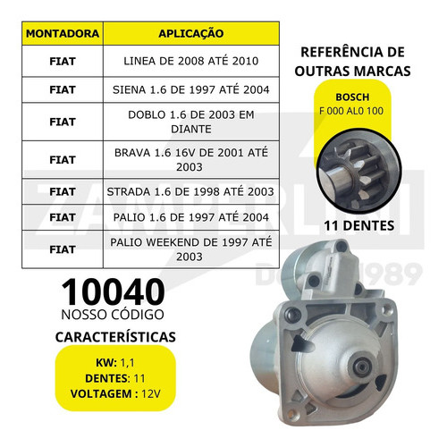 Motor De Partida Arranque Para Fiat Brava Doblo Palio Motor 1.6 16v 1996 Até 2007 11 Dentes