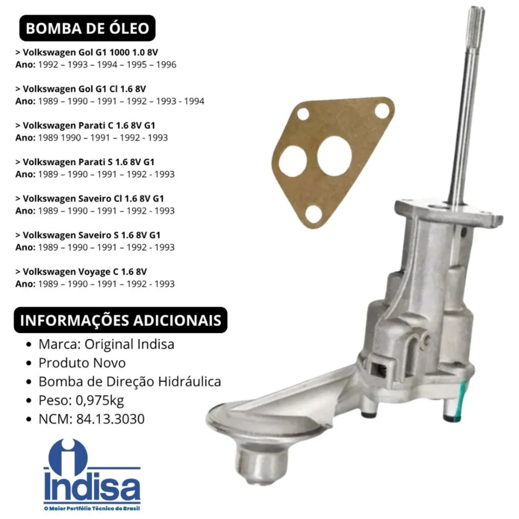 Bomba de Óleo Indisa para Volkswagen Gol Parati Voyage Saveiro 1.0 1.6 1989 1990 1991 1992 1993 Motor CHT/EA