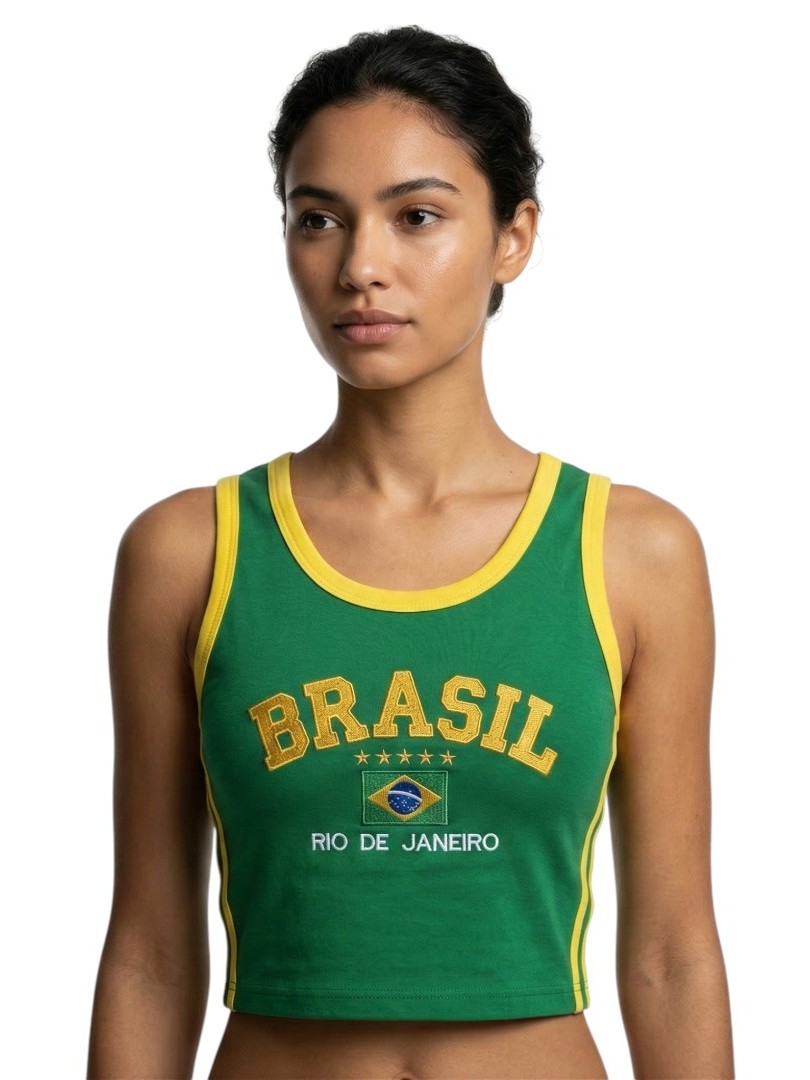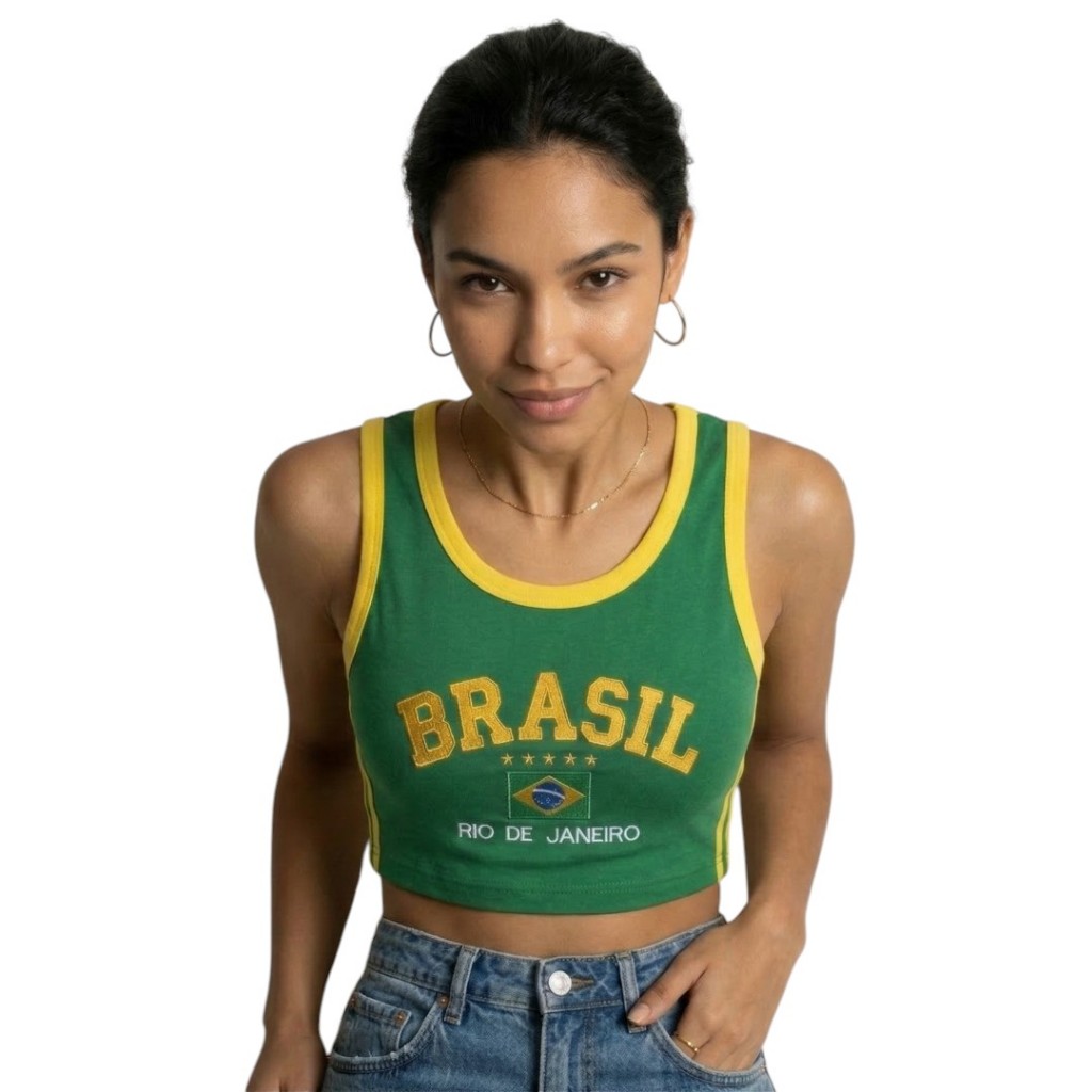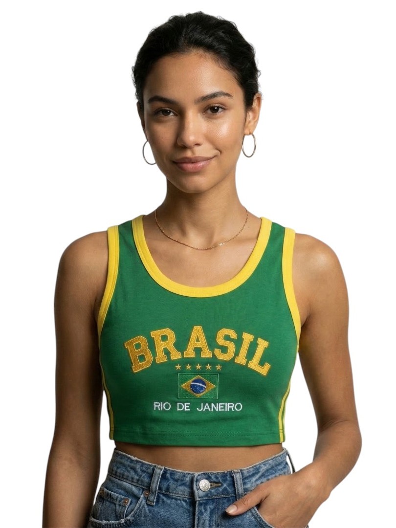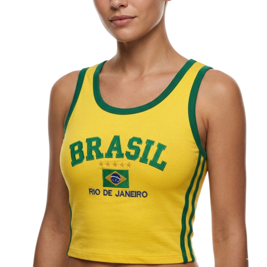 Camisa Regata Cropped Do Brasil Feminina Borbada
