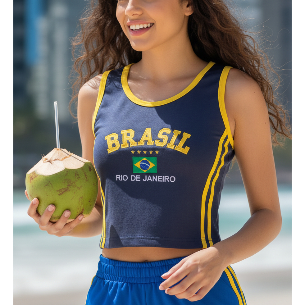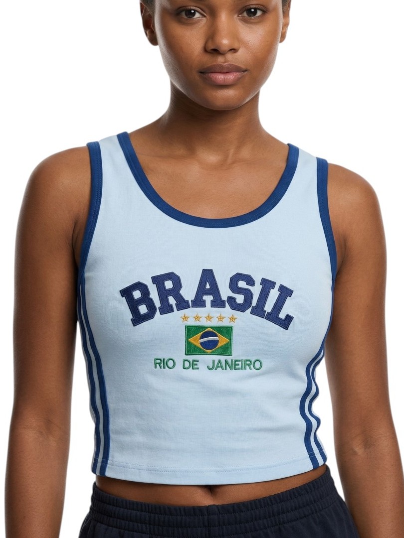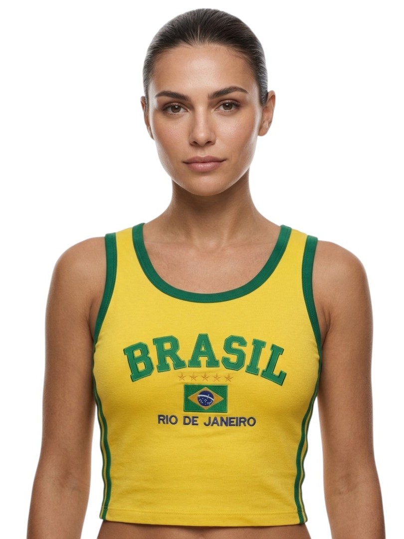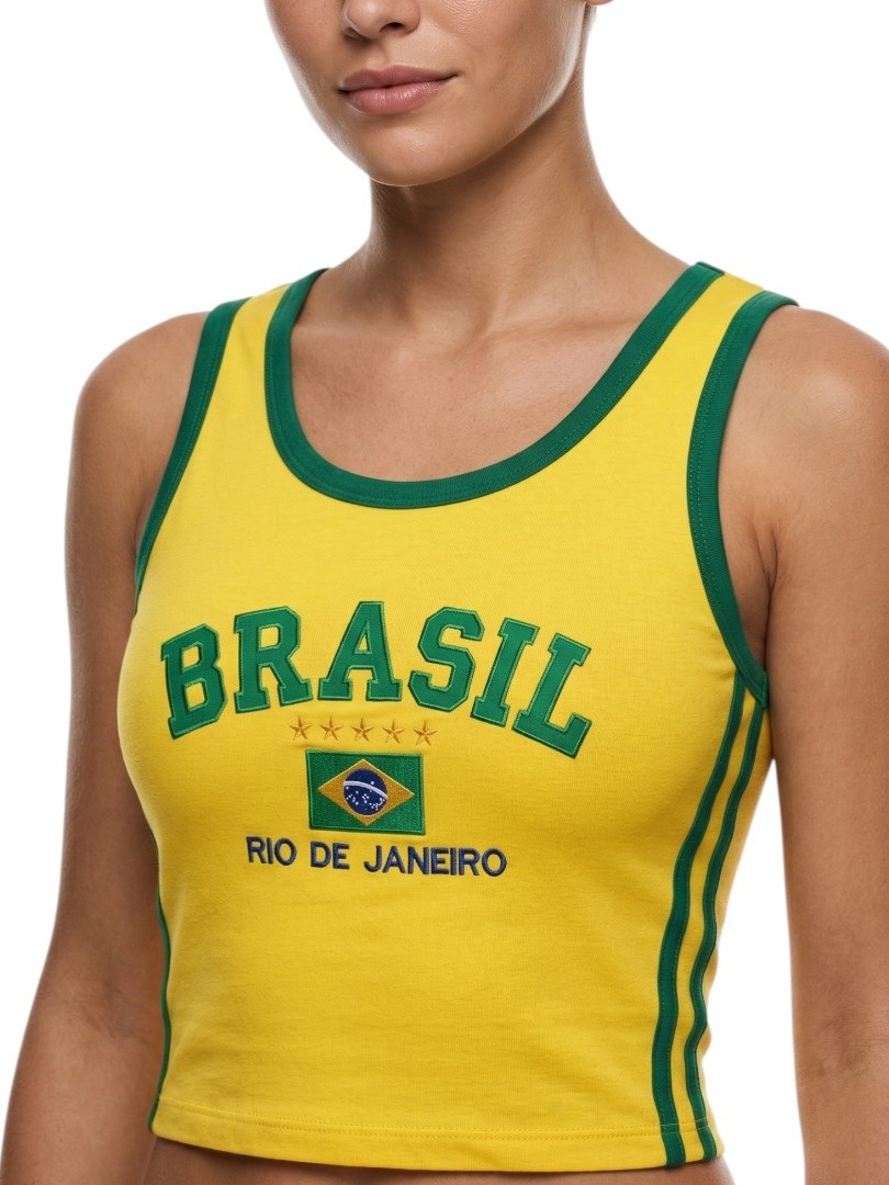 Camisa Regata Cropped Do Brasil Feminina Borbada