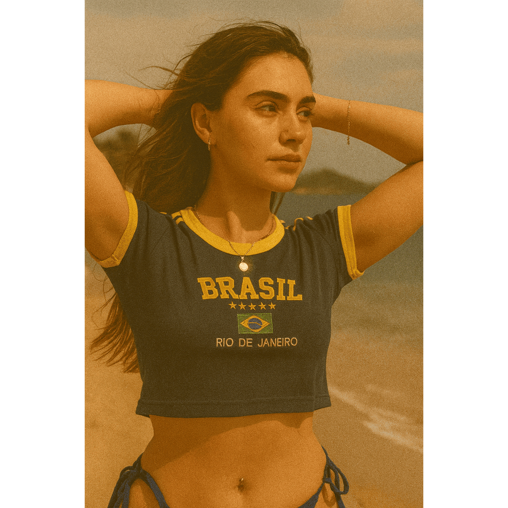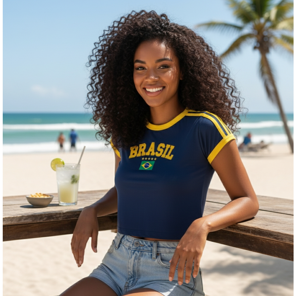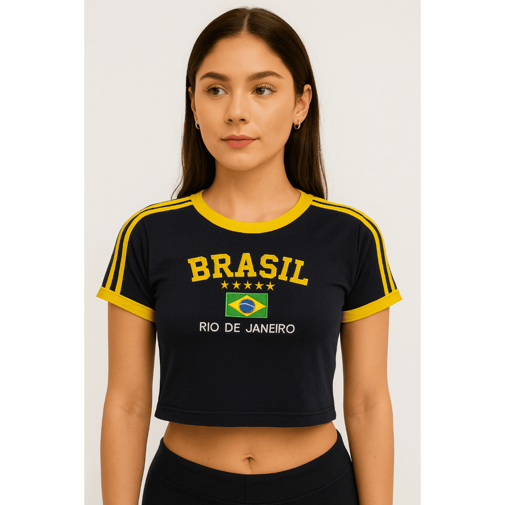 Cropped Do Brasil Bandeira Bordada - Azul Escuro