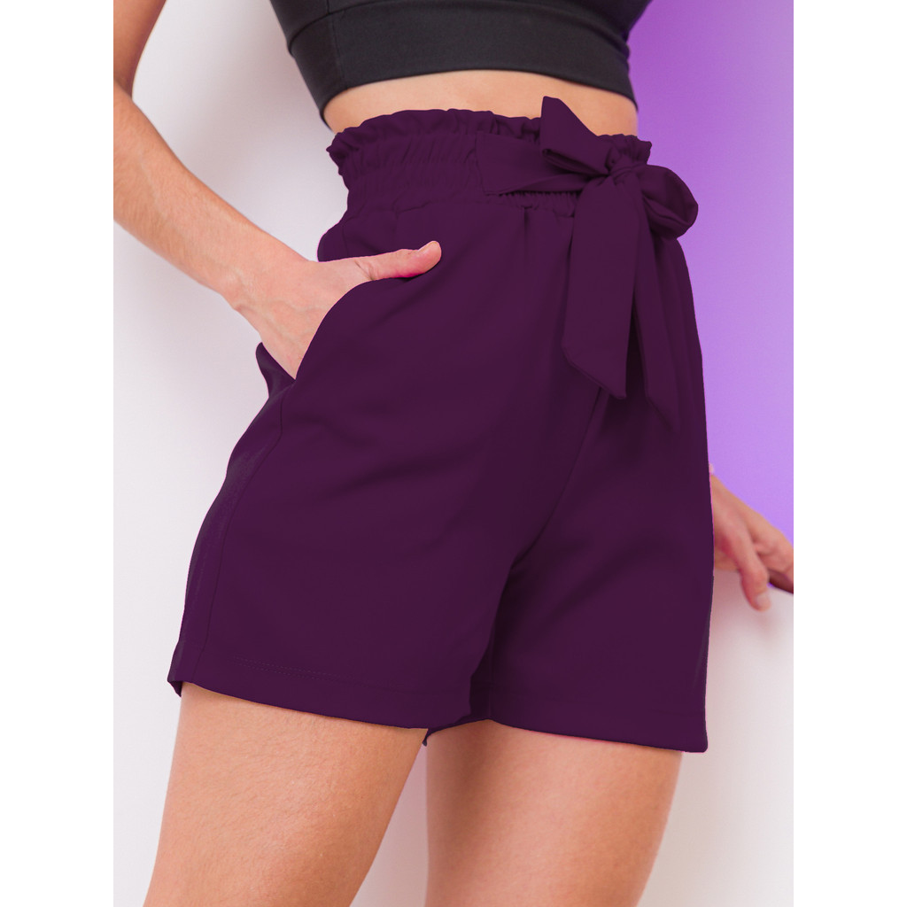 Short Feminino Curto de Alfaiataria - Cintura Alta com Laço Frontal e Bolsos Laterais, Conforto e Elegância para o Verão