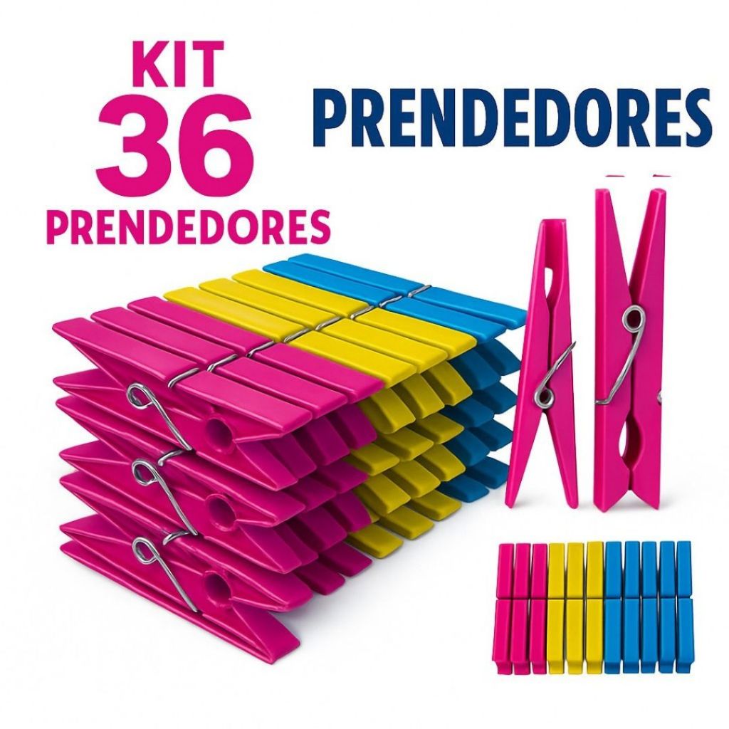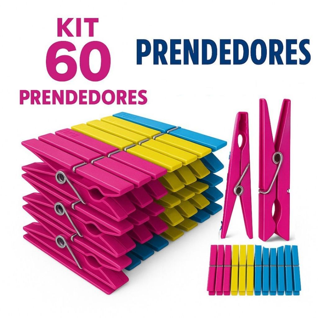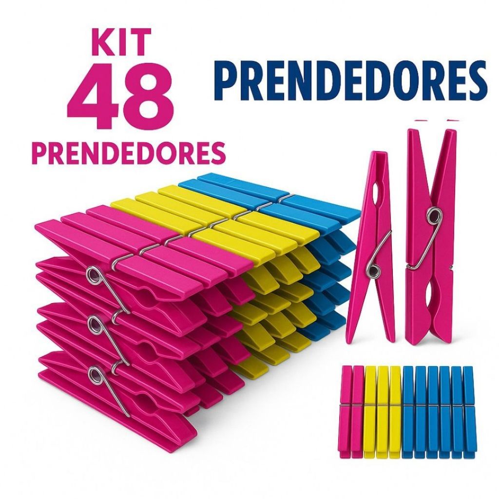 Kit com 60 / 48 / 36 / 24 / 12 Prendedores Pregadores de Roupa em Plástico Reforçado Cores Sortidas