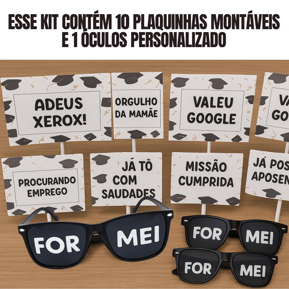 Kit Plaquinha Divertida C/10 Un para Festa + Óculos Escuro Madu Formei Para Formatura