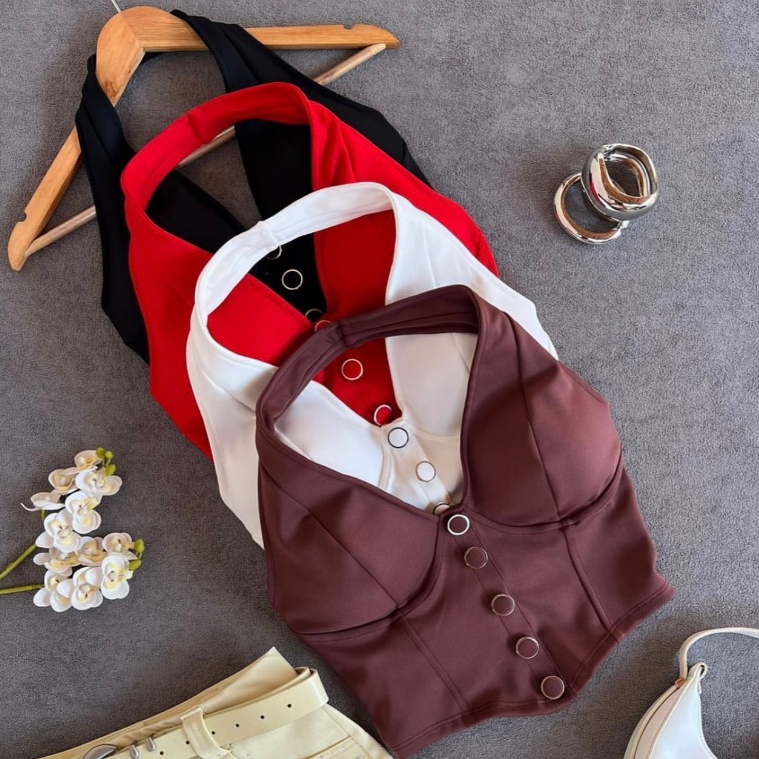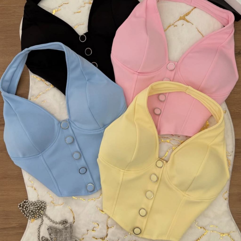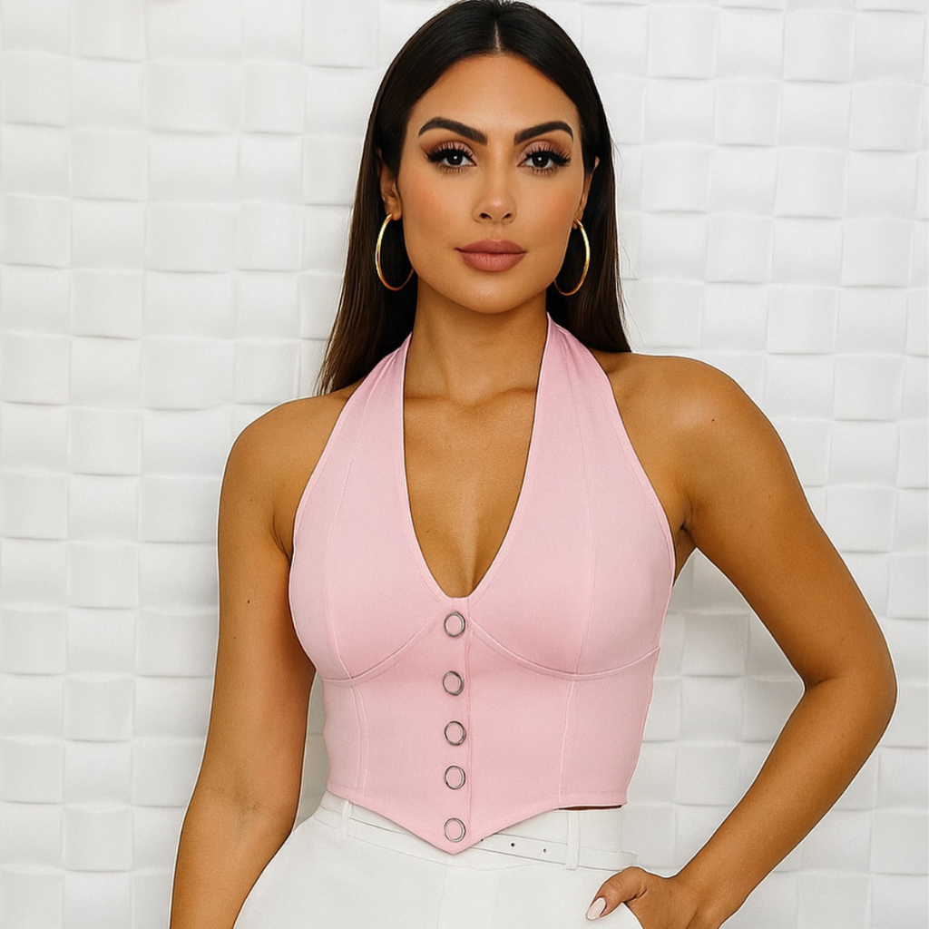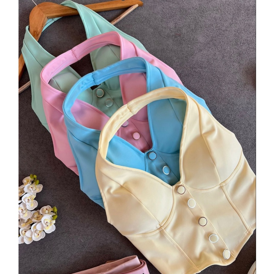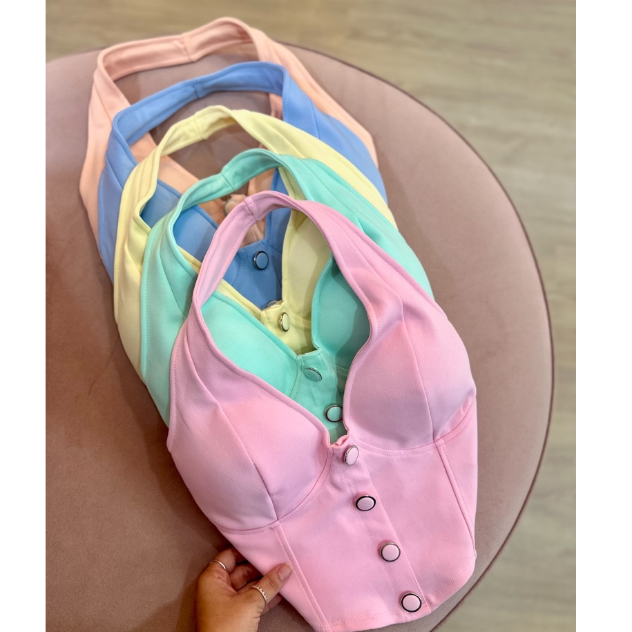 Corset Cropped Feminino Alfaiataria Premium com Bojo e Alças Grossas Candy Colors Tendência Verão 2026 Copa & Carnaval